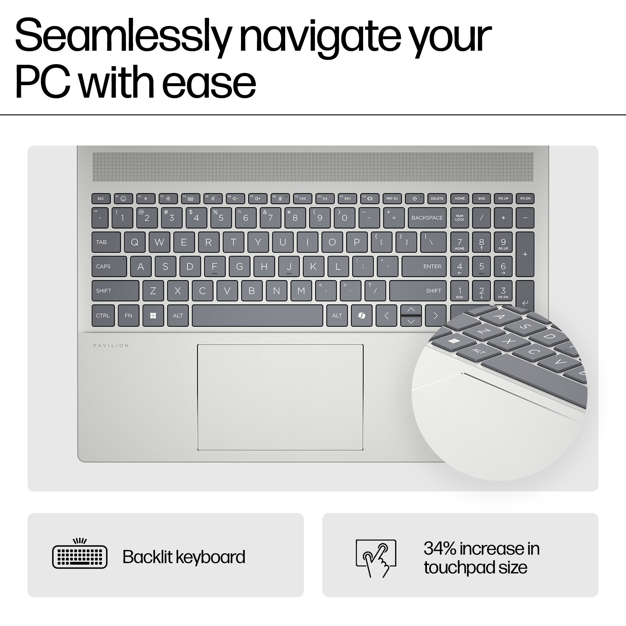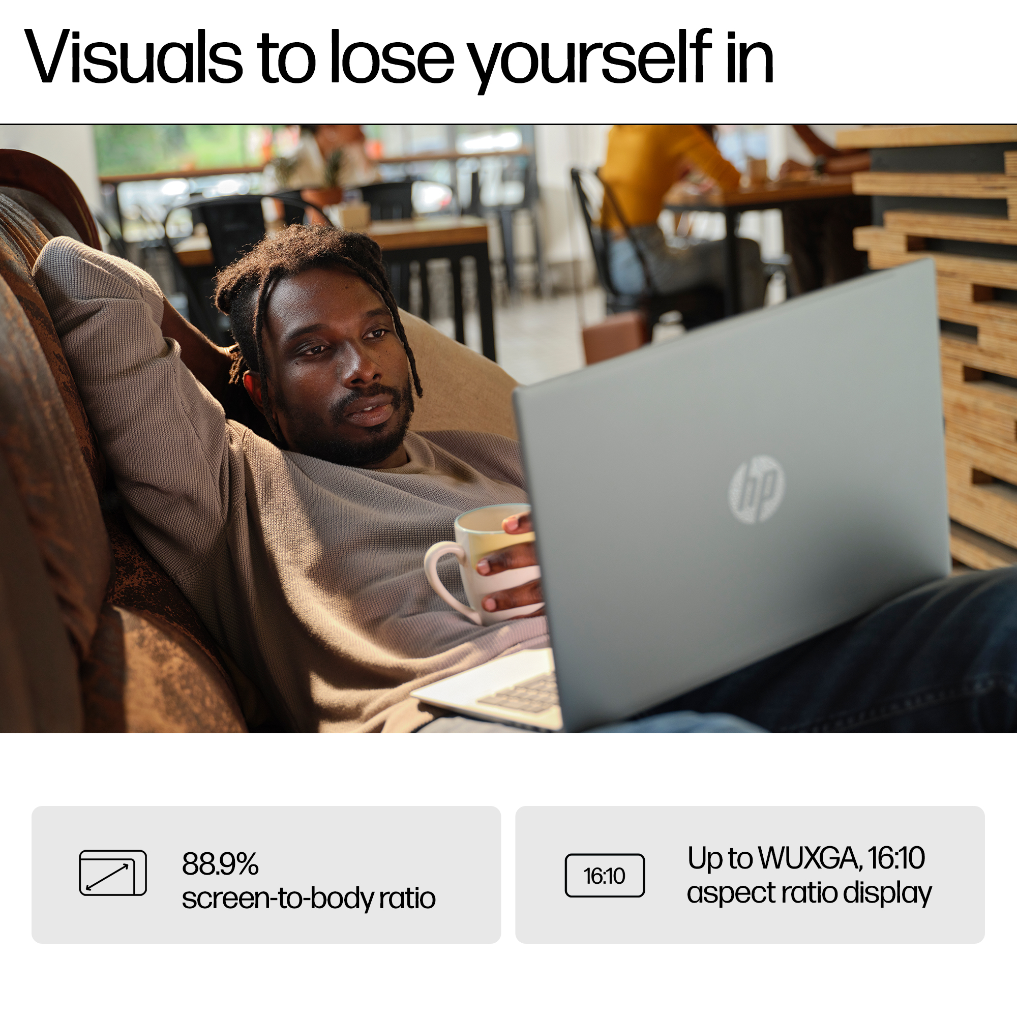 The HP Pavilion 16 inch PC is designed using recycled metals and post-consumer ocean-bound plastics<sup>[4]</sup>.