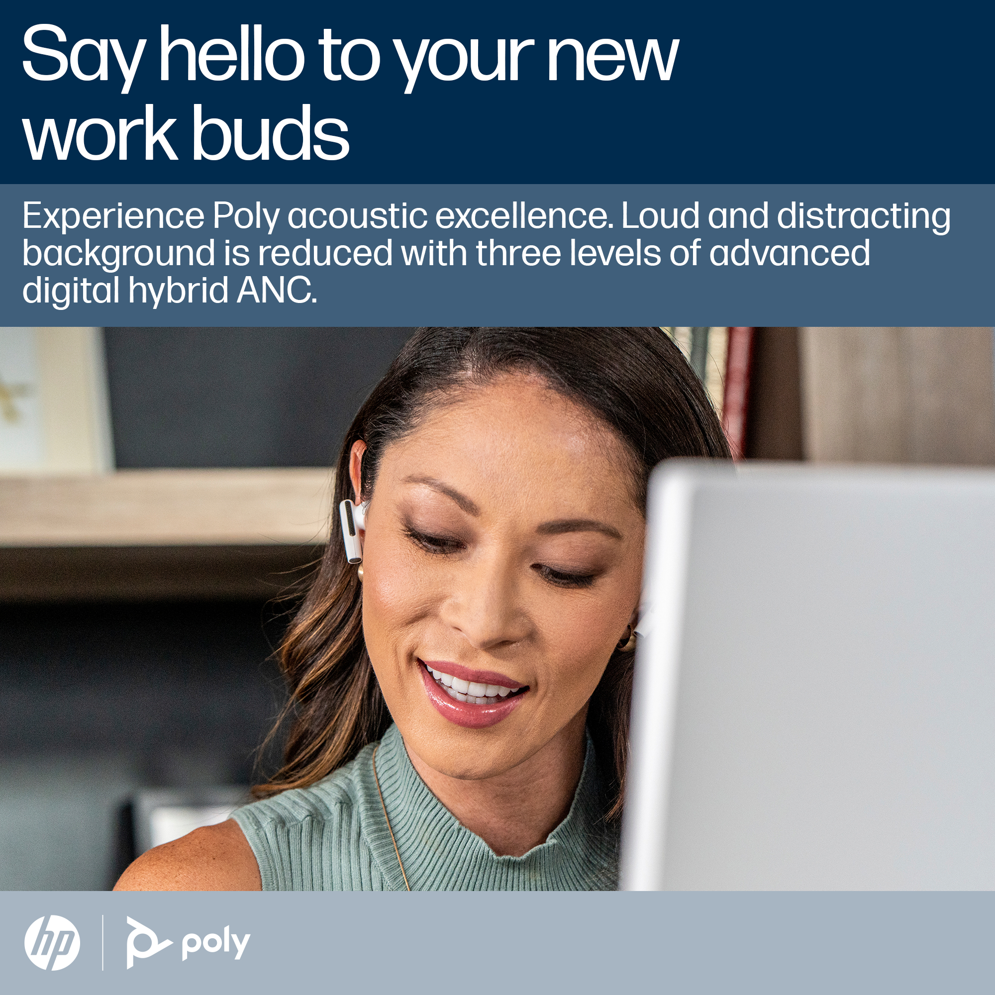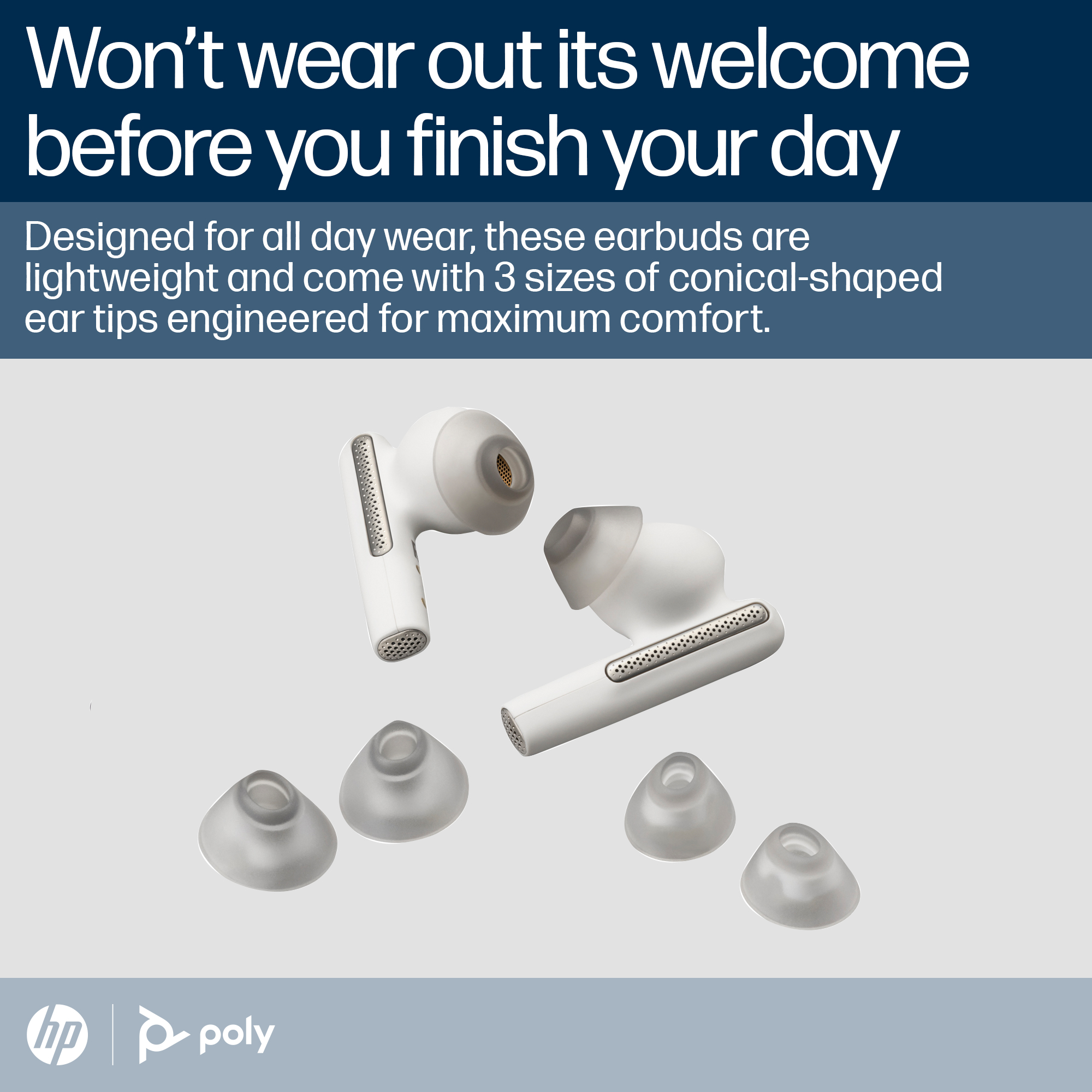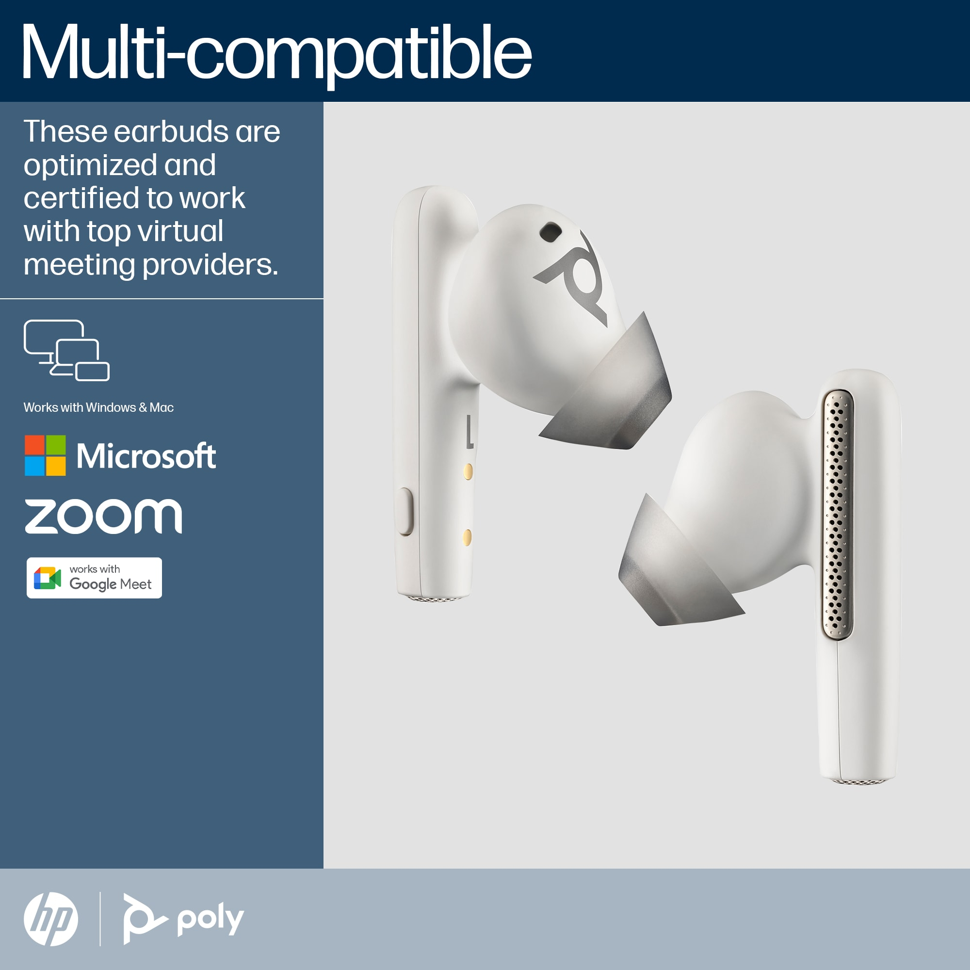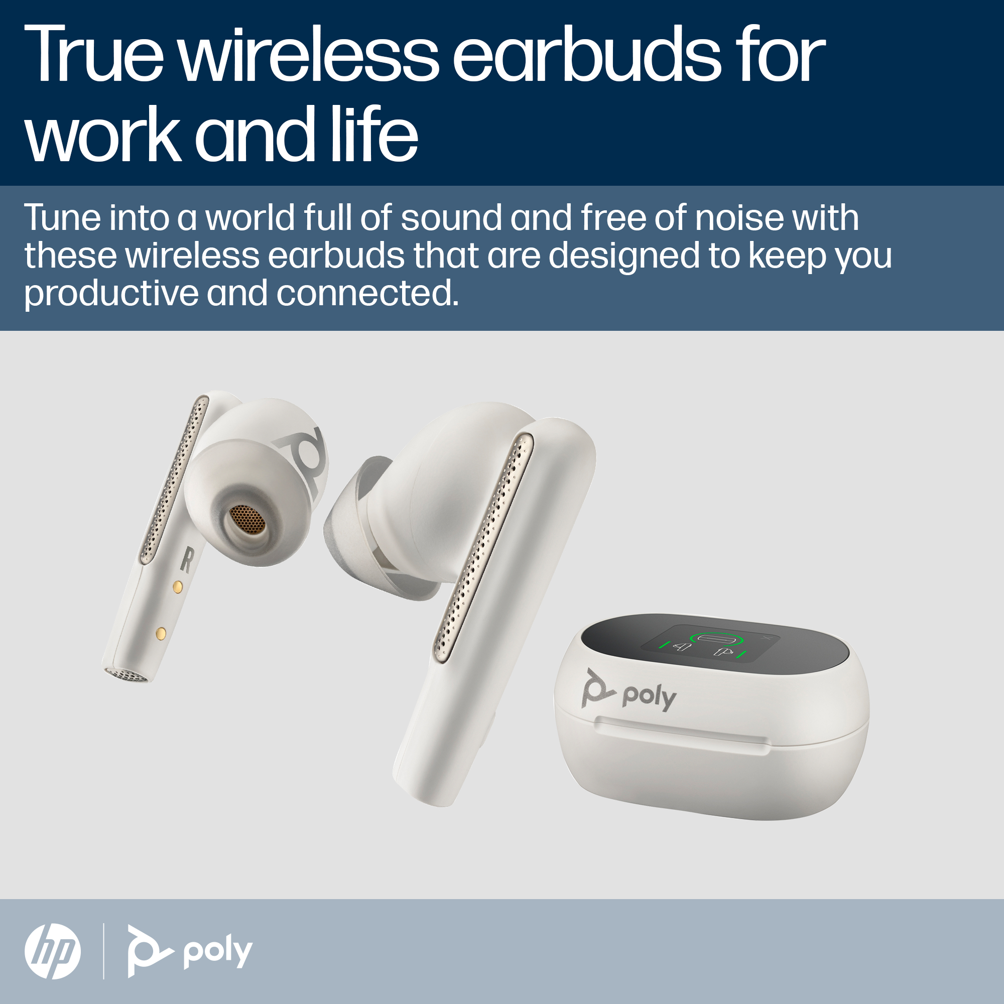 HP Poly Poly Voyager Free 60+ UC White Sand Earbuds +BT700 USB-A Adapter +Touchscreen Charge Case