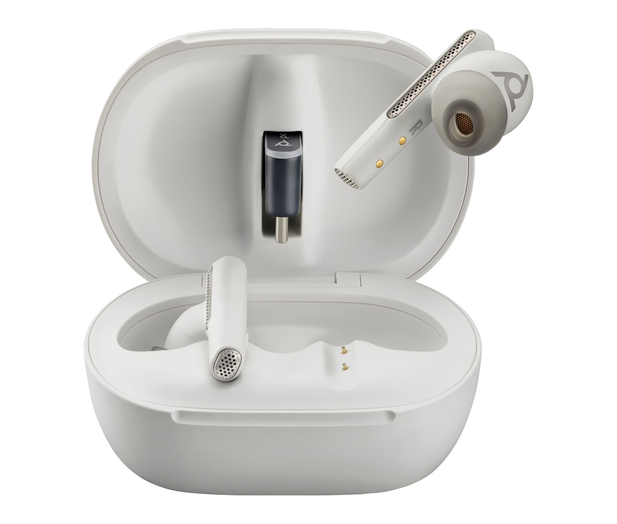 HP Poly Poly Voyager Free 60+ UC White Sand Earbuds +BT700 USB-C Adapter +Touchscreen Charge Case