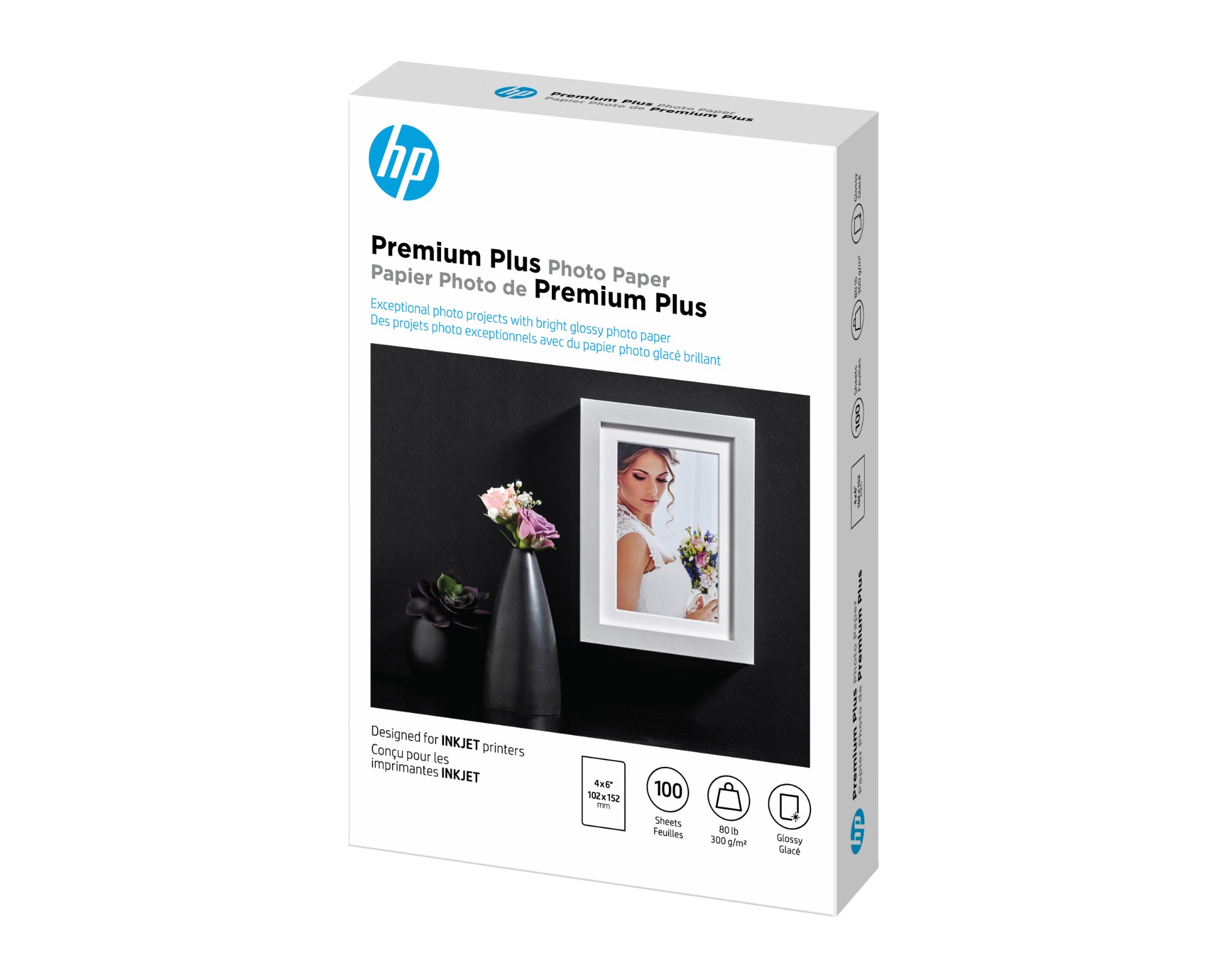 HP Premium Plus Photo Paper, Glossy, 80 lb, 4 x 6 in. (101 x 152 mm), 100 sheets