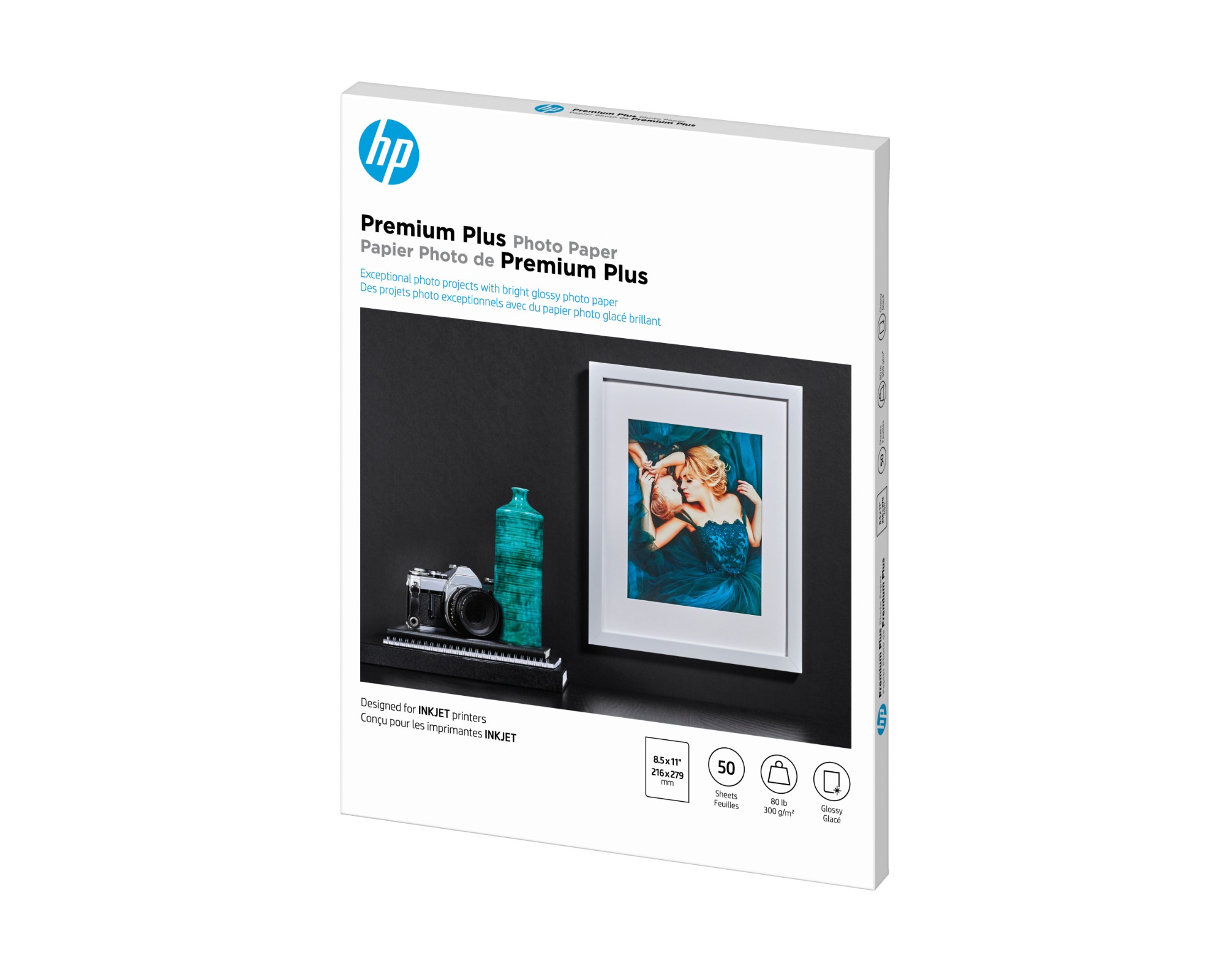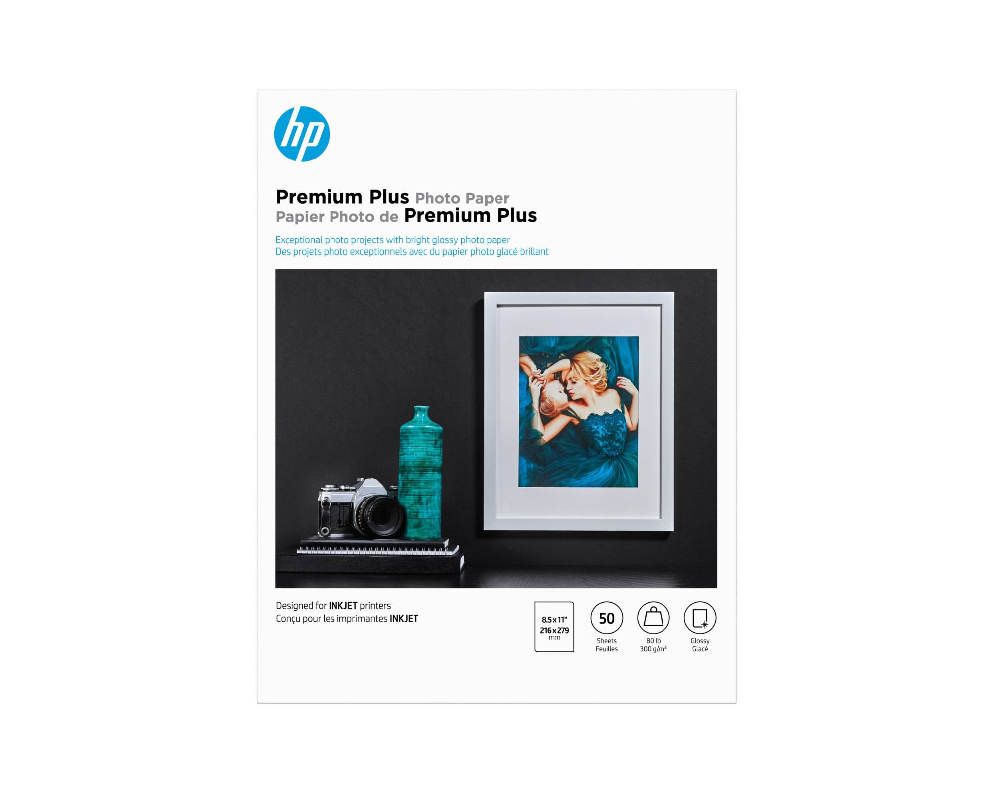 HP Premium Plus Photo Paper, Glossy, 80 lb, 8.5 x 11 in. (216 x 279 mm), 50 sheets, 300 g/m², 11.5 µm, Works with inkjet printers, optimized for Original HP Ink, Business, Enterprise, 15 - 35 °C, 0 - 40 °C