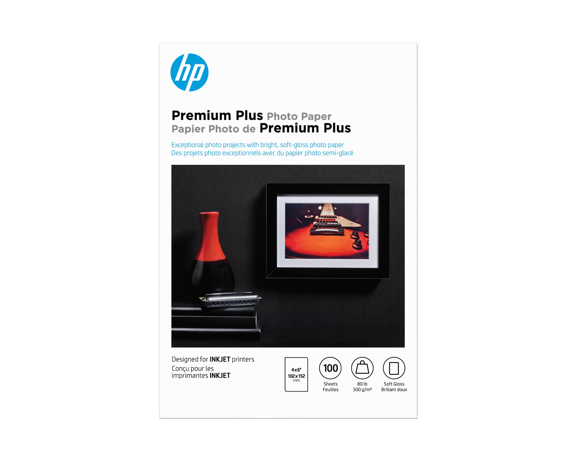 HP Premium Plus Photo Paper, Satin, 80 lb, 4 x 6 in. (101 x 152 mm), 100 sheets