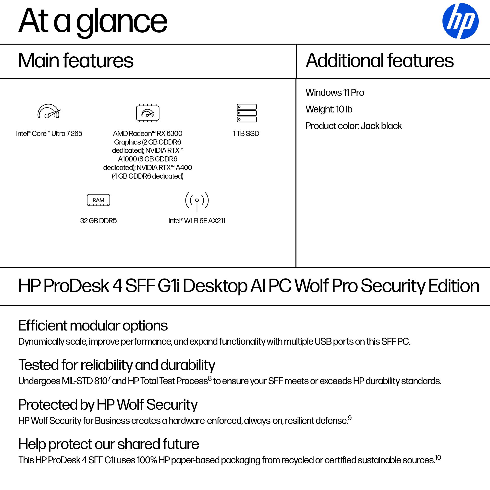 HP ProDesk 4 SFF G1i Desktop AI PC Wolf Pro Security Edition Intel Core Ultra 7 265 32 GB DDR5-SDRAM 1 TB SSD Windows 11 Pro Black