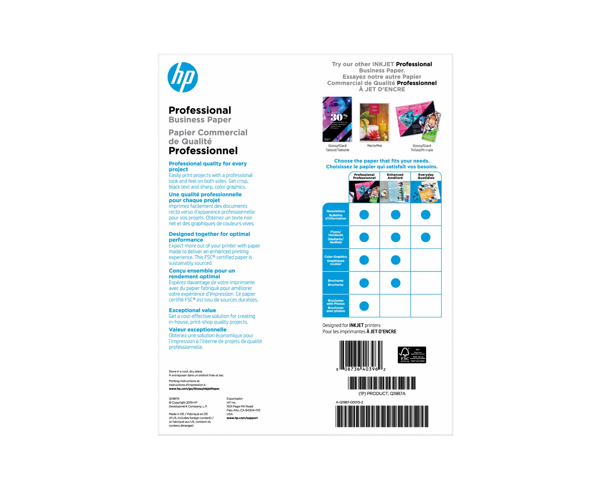 HP Professional Business Paper Glossy 48 lb 8.5 x 11 in. (216 x 279 mm) 150 sheets