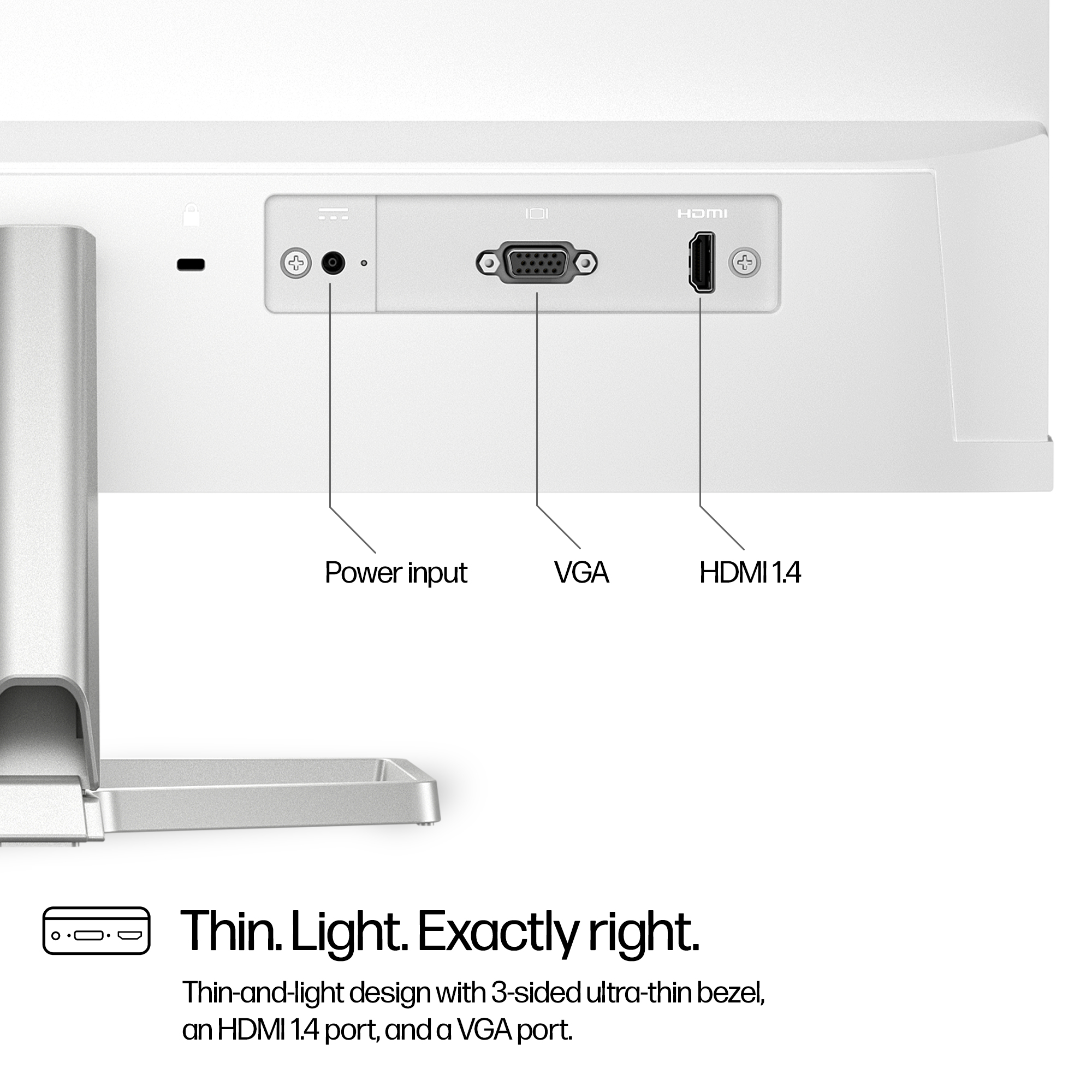 This thin-and-light 23.8-inch FHD monitor is designed to look great in any space. Whether learning, playing, or watching content, its ultra-thin 3-sided borderless design lets you create a seamless dual-screen setup for enhanced viewing, while the simplified cable management cuts the clutter. Plus, easily connect with HDMI 1.4 and VGA ports.