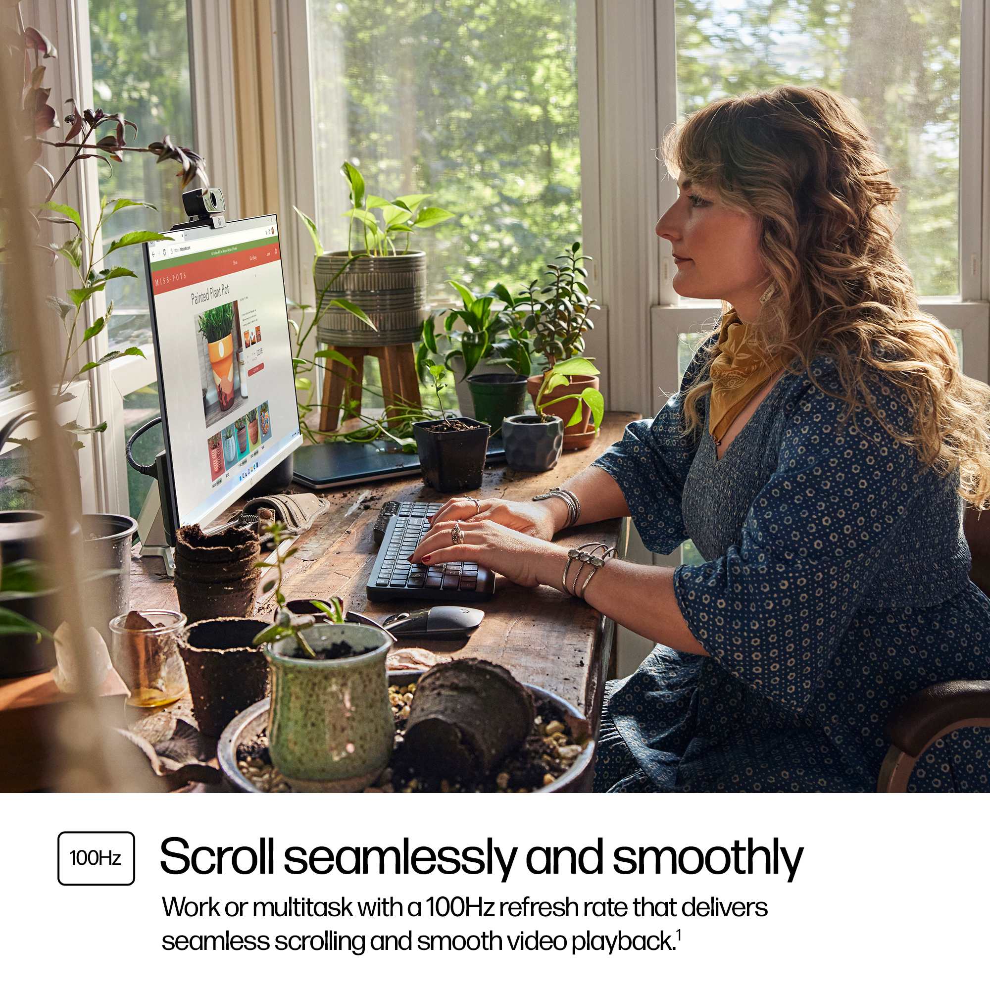 Sit back and soak in all the content you love with this exceptional 27" FHD monitor. Experience colorful imagery and vibrant detail like they were intended with 99% sRGB color, deep 1500:1 contrast ratio, and 300 nits brightness.<sup>[1]</sup> Its 100 Hz refresh rate delivers seamless scrolling and smooth, stutter-free viewing.