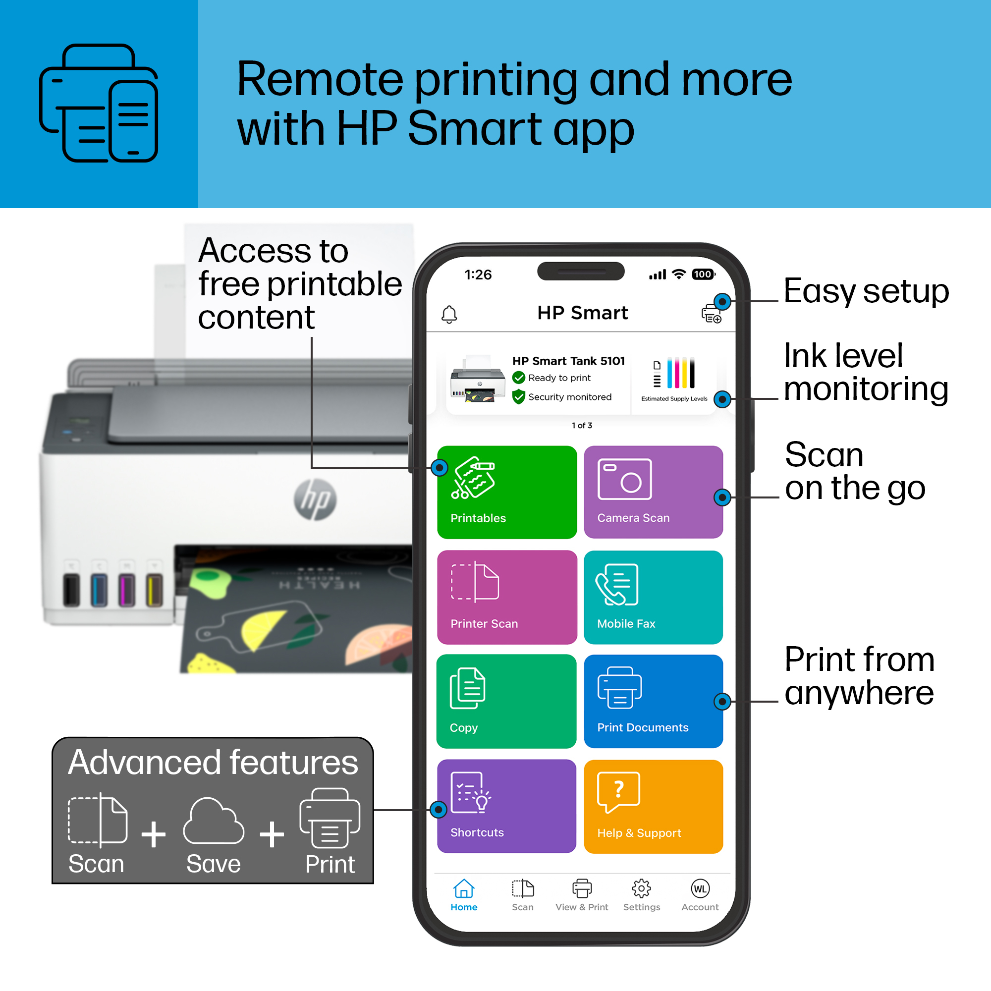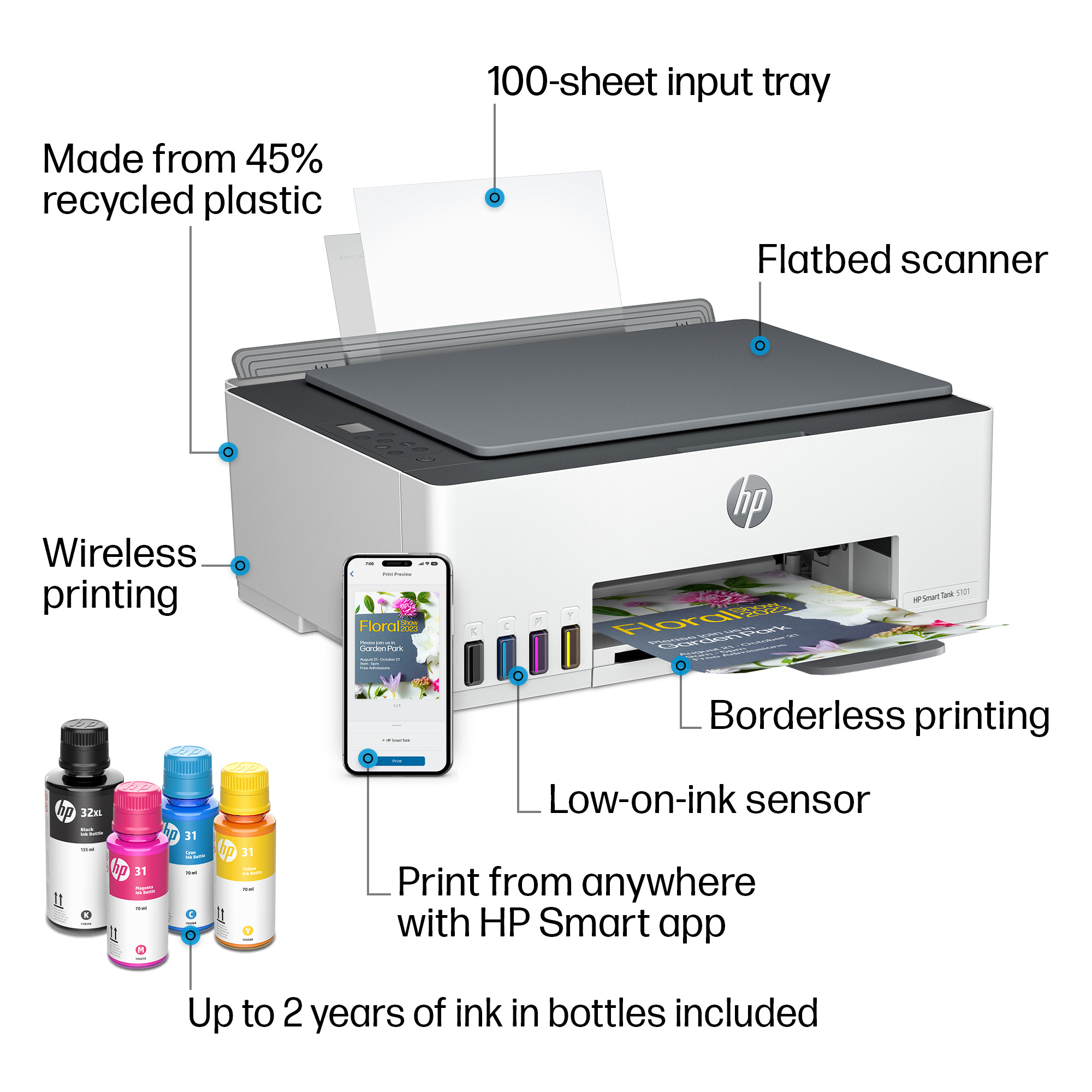 HP Smart Tank 5101 Wireless All-in-One Color Printer, Copier, Scanner