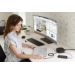 Avoid a messy desk by using a simple one-cord setup that plugs in multiple devices.