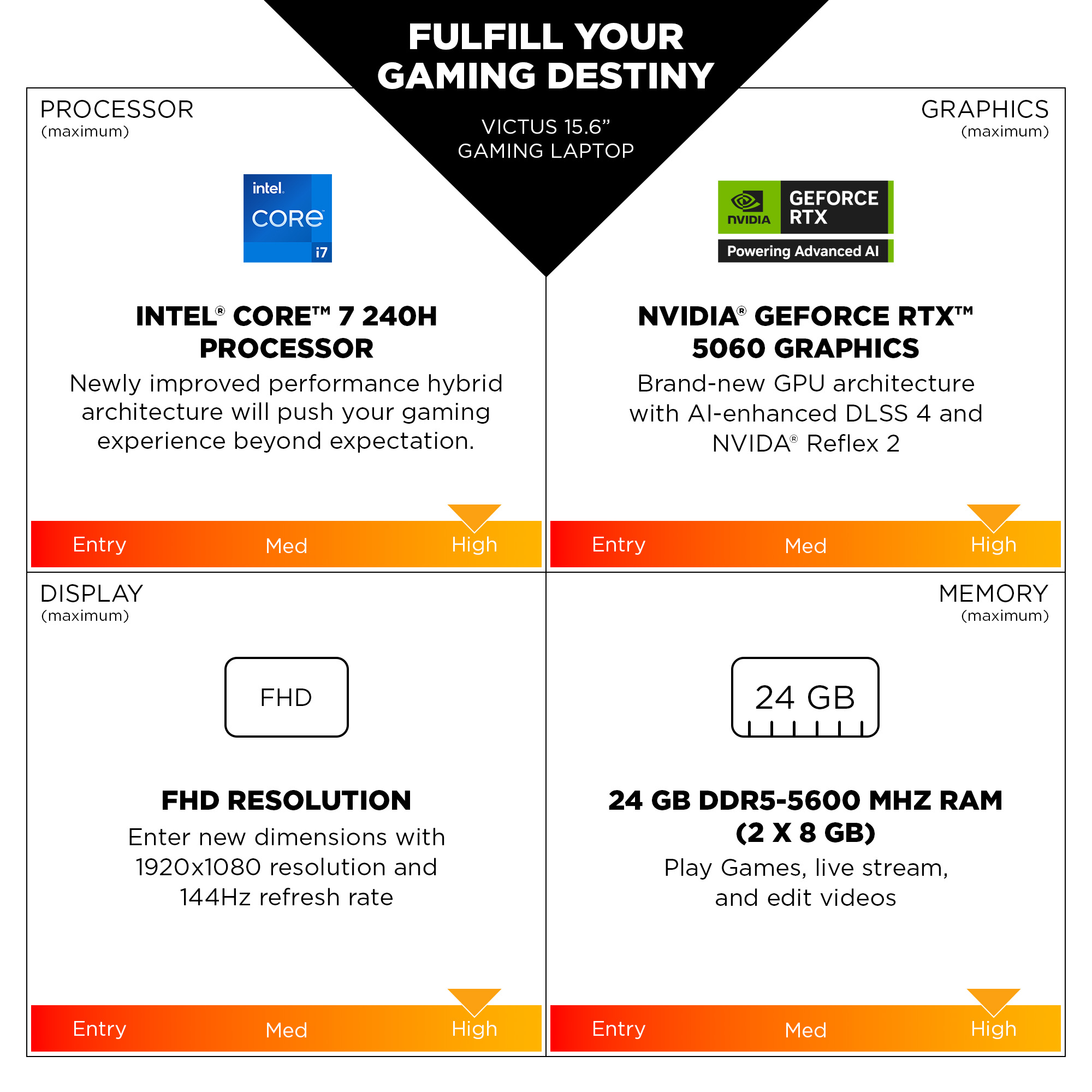HP Victus Gaming Victus 15-fa2500nr Intel® Core™ i5 i5-13420H Laptop 15.6" Full HD 8 GB DDR4-SDRAM 512 GB SSD NVIDIA GeForce RTX 2050 Wi-Fi 6 (802.11ax) Windows 11 Home Black