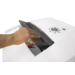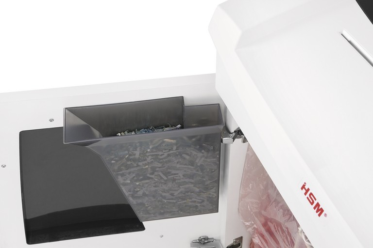 Mobile, very high performance model for open-plan offices. Multi-function operating button, reversing button and integrated button lock. Auto-reverse in the event of a paper jam. Folding safety element with contact protection and integrated service flap. Automatic oiler for cutting unit (particle cut version only). Separate CD cutting unit (security level 3) and metal detection, depending on security level. Economic energy management (EMCS). Filling level display through inspection window. Large collection volume. With removable, reusable waste bag. pecial CD waste container for correctly sorted separation of the shredded material (optional). Made in Germany.