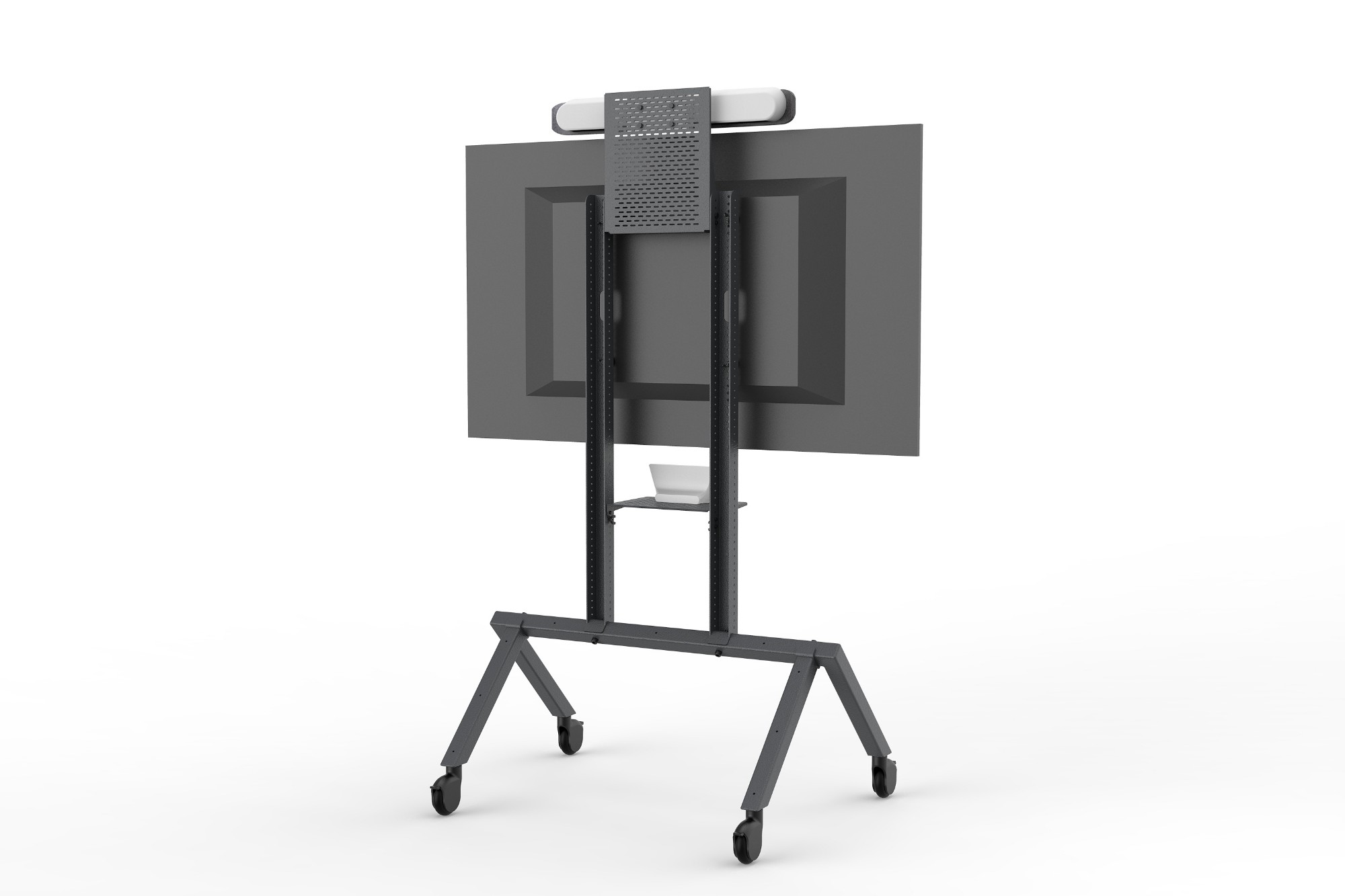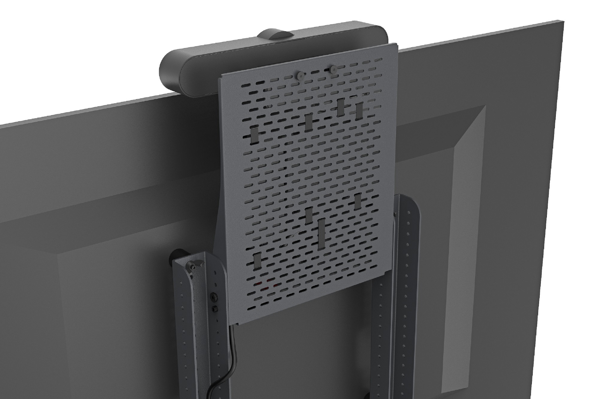 With the included Soundbar Mount, you're flexible to effortlessly mount a wide variety of soundbars and sound-shaped speakerphones above or below the display. Within moments, your device is firmly attached to the rigid structure of the cart.