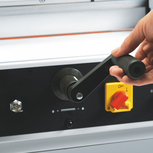 MBM Triumph 4350 Automatic Tabletop Cutter is a top-of-the-line paper-cutting machine designed for professional use. An electric blade and clamp drive automate the cutting and clamping process to eliminate the need for manual lever-pulling. With a digital display, it offers precise back gauge positioning for accurate measurements and consistent results. The bright LED optical cutting line provides a visual guide that guarantees precise alignment and reduces the chance of errors.