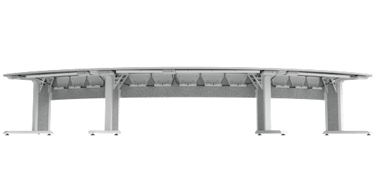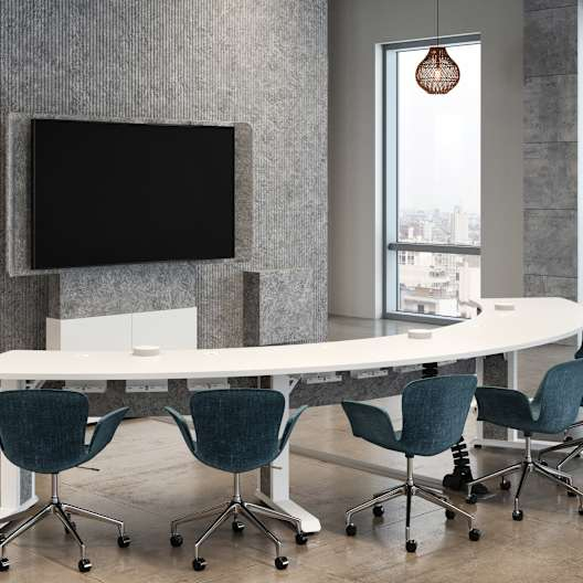 The Forum™ Arc shaped table allows for all in-person participants to directly face the remote participants during videoconferencing calls.
