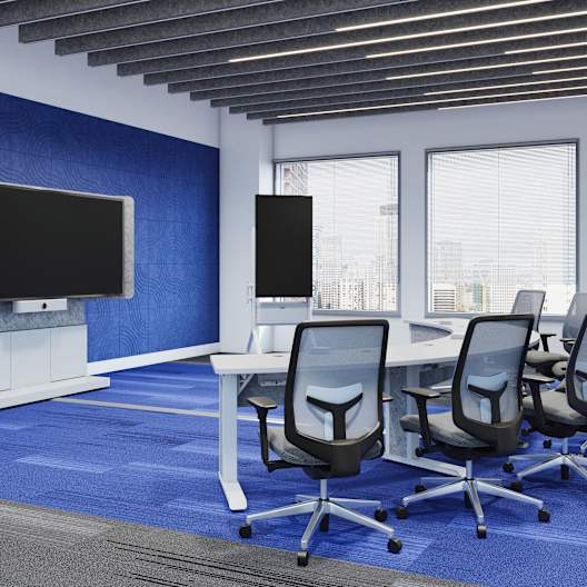 - The Arc shaped table allows for all in-person participants to face the remote participants directly