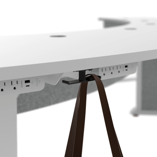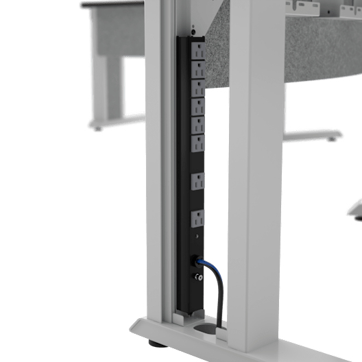 - Optional power strip mounting on table leg(s) or underneath table worksurface