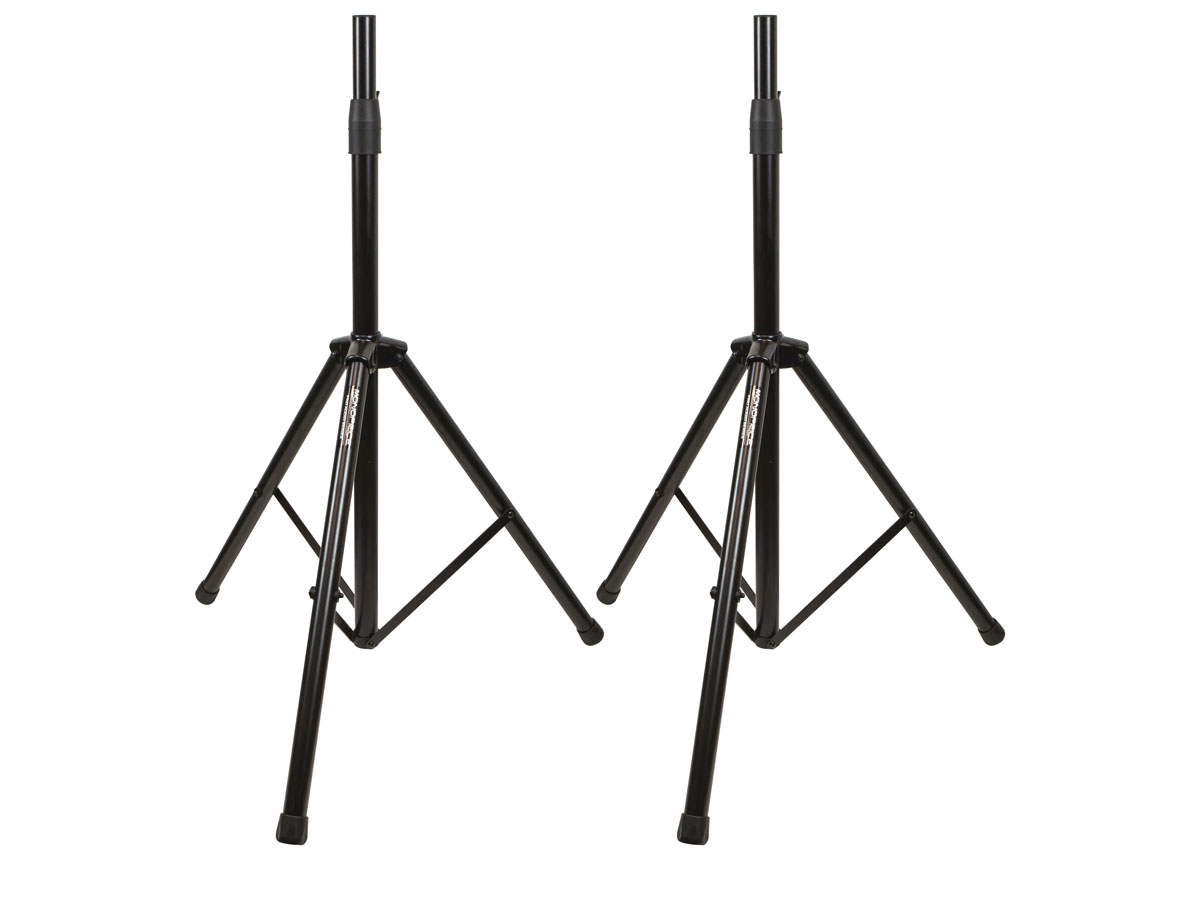 These heavy-duty steel stands are designed with the performance professional in mind. They are constructed from 1 3/8" diameter steel tubes and can each hold up to 130 lbs in weight. Each speaker can be positioned from 43" to more than 7 feet above the stage, ensuring that your music reaches your entire audience. A built-in pneumatic shock absorber in each stand provides an extra level of safety by preventing speaker drops or falls. The base of the stand measures about 42" when fully expanded.