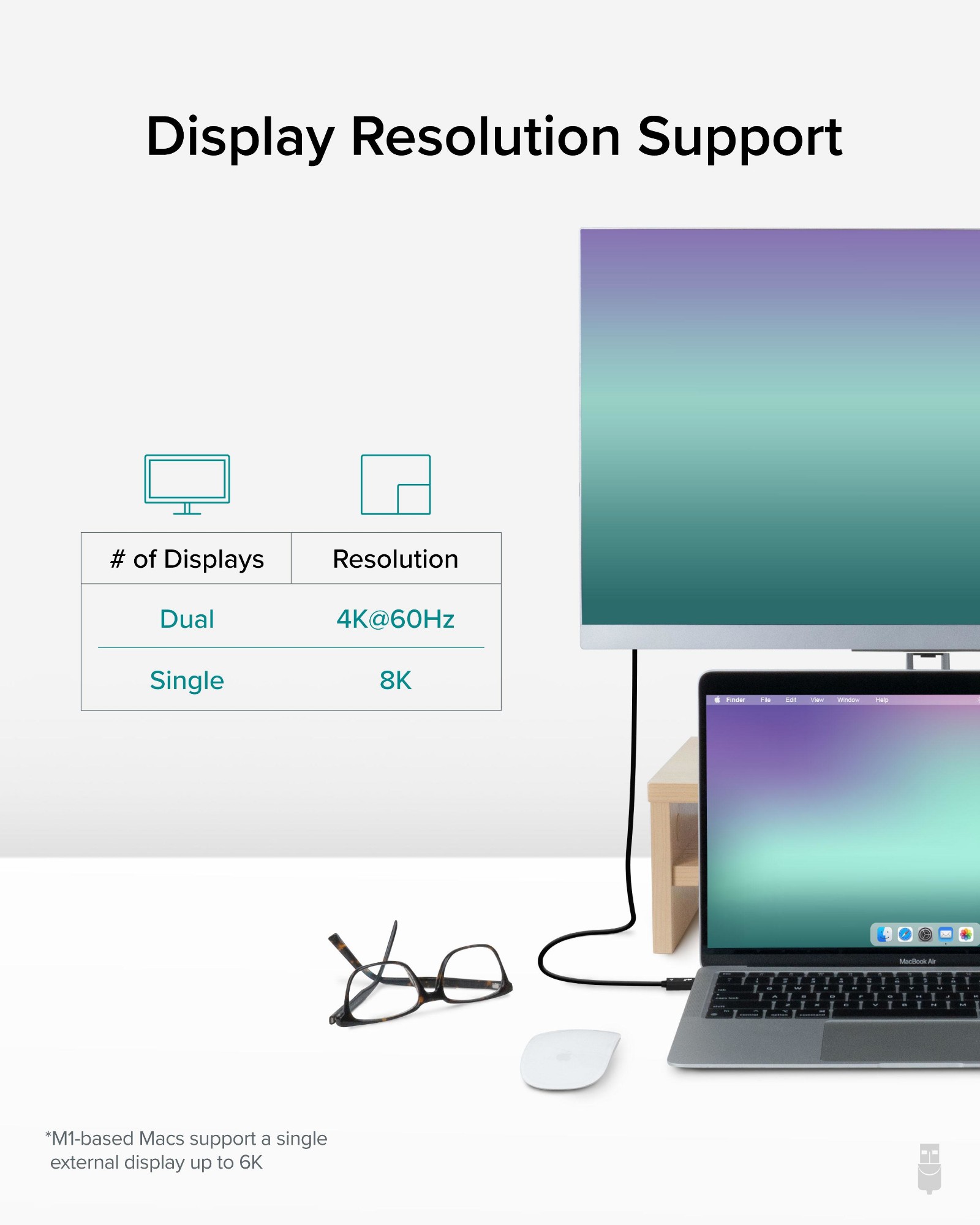 You have a powerful laptop. You have a high-definition monitor. Don’t sacrifice your resolution to cheap Thunderbolt cables. Plugable’s 1M Passive Thunderbolt 4 and USB 4 cables deliver 33 million picture-perfect pixels, either split between two 4K monitors @60Hz, or all on one 8K screen @30Hz.