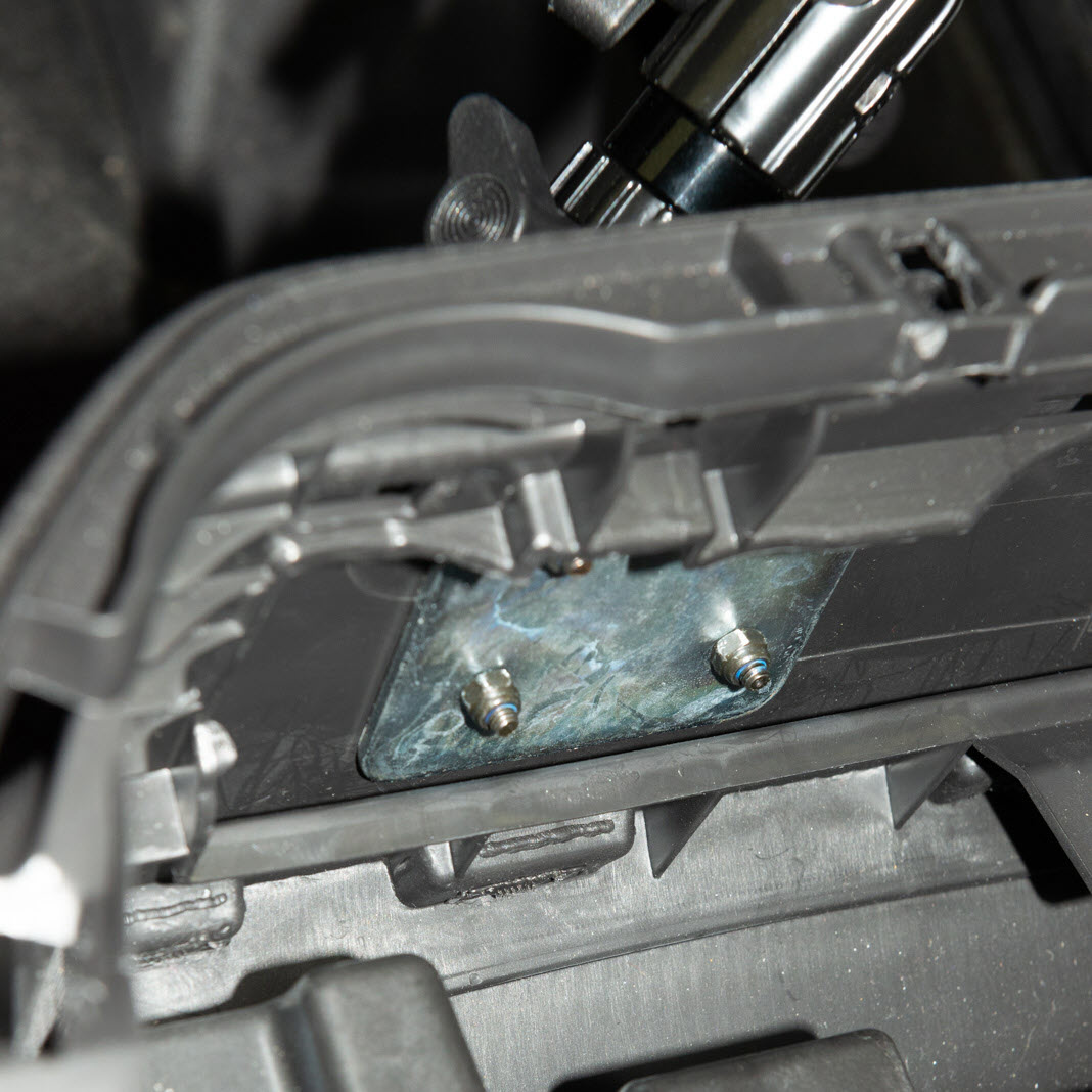 When attaching a ProClip device holder or Pedestal Mount to a vehicle dashboard or other surface which lacks sufficient structural integrity to provide a stable mounting platform, we highly recommend the use of one of our Backing Plates for added stability and durability. Simply drill the properly located AMPS hole pattern in your mounting surface, position the plate on the back side of the mounting surface and then thread machine screws through your holder or pedestal base, through the drilled surface and into the AMPS holes in the Backing Plate. Then secure with the included Nyloc nuts.