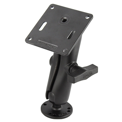 The RAM-101U-2461 consists of a STANDARD length double socket arm, 2.5" diameter round base with the universal AMPS hole pattern and 3.625" square plate with the VESA hole pattern. The VESA plate contains a 75mm X 75mm hole pattern. Designed into the mount is a 1.5" diameter patented rubber ball and socket system with adjustment points at both socket ends of the arm. Rubber ball and socket technology allows for almost infinite adjustment and perfect viewing angles.