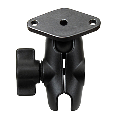The RAM-B-103-A-238U consists of a diamond base and SHORT double socket arm that will accept 1" ball bases. The diamond base measures 2.43" x 1.31" and contain two holes 1.912" from center to center, positioned at both ends of the diamond base. The hole pattern found on the diamond base will connect to many RAM cradles, as well as third party cradles including mounts with the industry standard AMPS hole pattern. Designed into the mount is a 1" diameter patented rubber ball and socket system with adjustment points at both ends of the socket arm; this with a twist of the arm knob allows for you to maneuver the mount to your optimum viewing position.