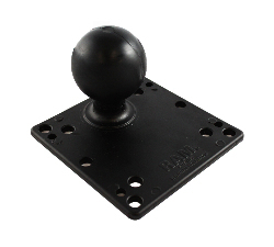 The RAM-D-246U-IN1 consists of a 2.25" rubber ball, connected to a 4.75" square plate with 4x100mm holes and 4x75mm holes in each corner.