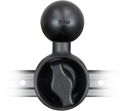 The Track Ball Side Track Base consists of a t-bolt, ratchet tooth and groove composition and 1.5" rubber ball. With a turn of the knob you can quickly fasten, adjust or remove the base to your existing track system. The ratchet tooth and groove composition enables you to slide and relocate the mount along the track; it can also rotate 360 degrees around, parallel to the track. The patented rubber ball design creates friction; this stabilizing the entire mount, along with dampening shock and vibration.