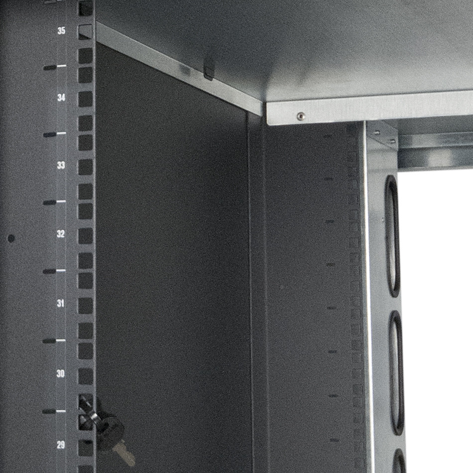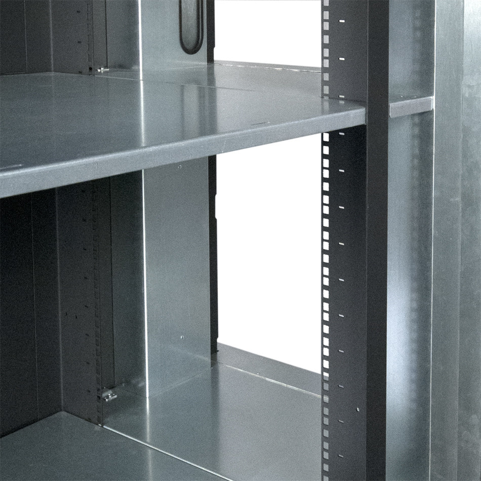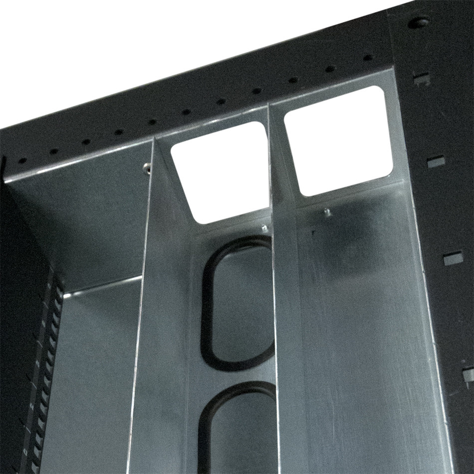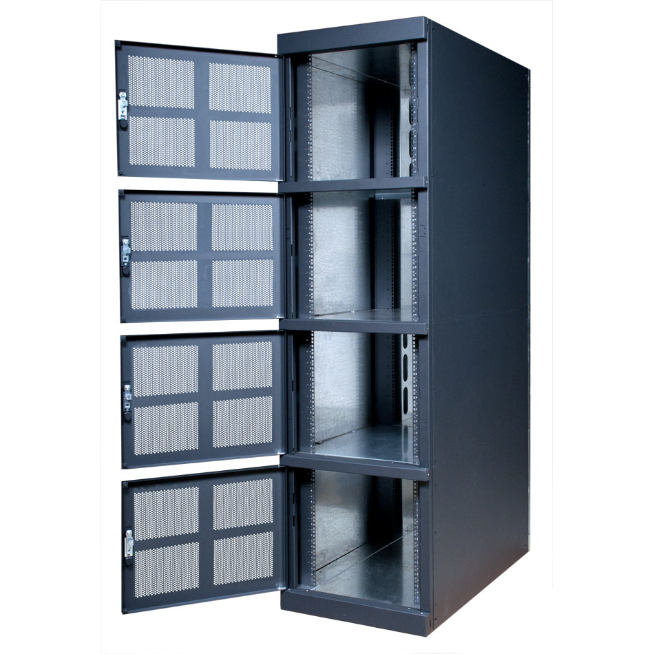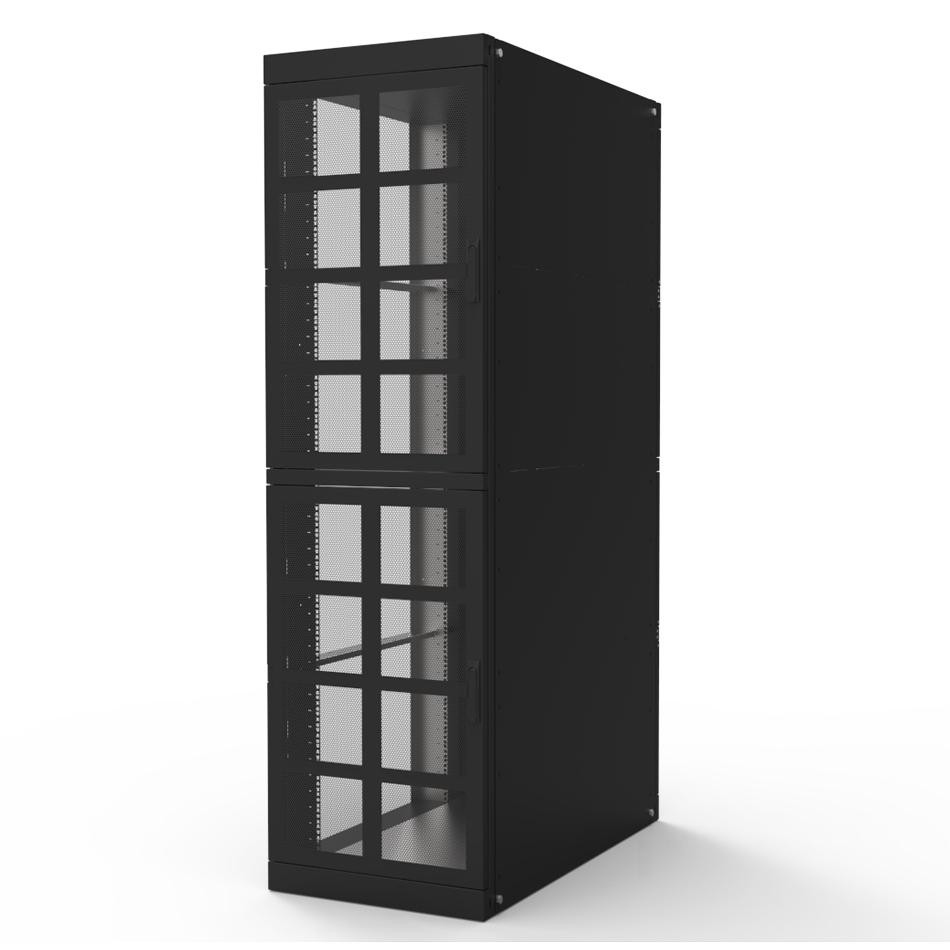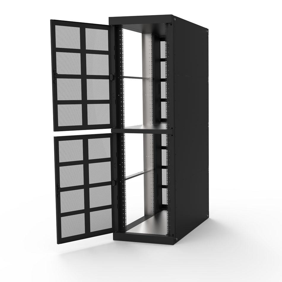 The Colocation Cabinet provides a secure, self-contained means for 2,3 & 4 tenants to share a single cabinet. This cabinet efficiently utilizes the floor space in the datacenter by minimizing the amount of unused space in the cabinets. The quality of manufacturing in this cabinet will instill confidence in the tenant that their physical infrastructure is protected from unauthorized access. RackSolutions, designer and manufacturer of the industry’s most innovative IT infrastructure products, has developed a unique Colocation Cabinet containing features that are unmatched in the industry. The most distinctive feature of this cabinet is the secure cable channels (located in the back) within each compartment. The secure channels are compatible with overhead and under floor structured cabling products.
