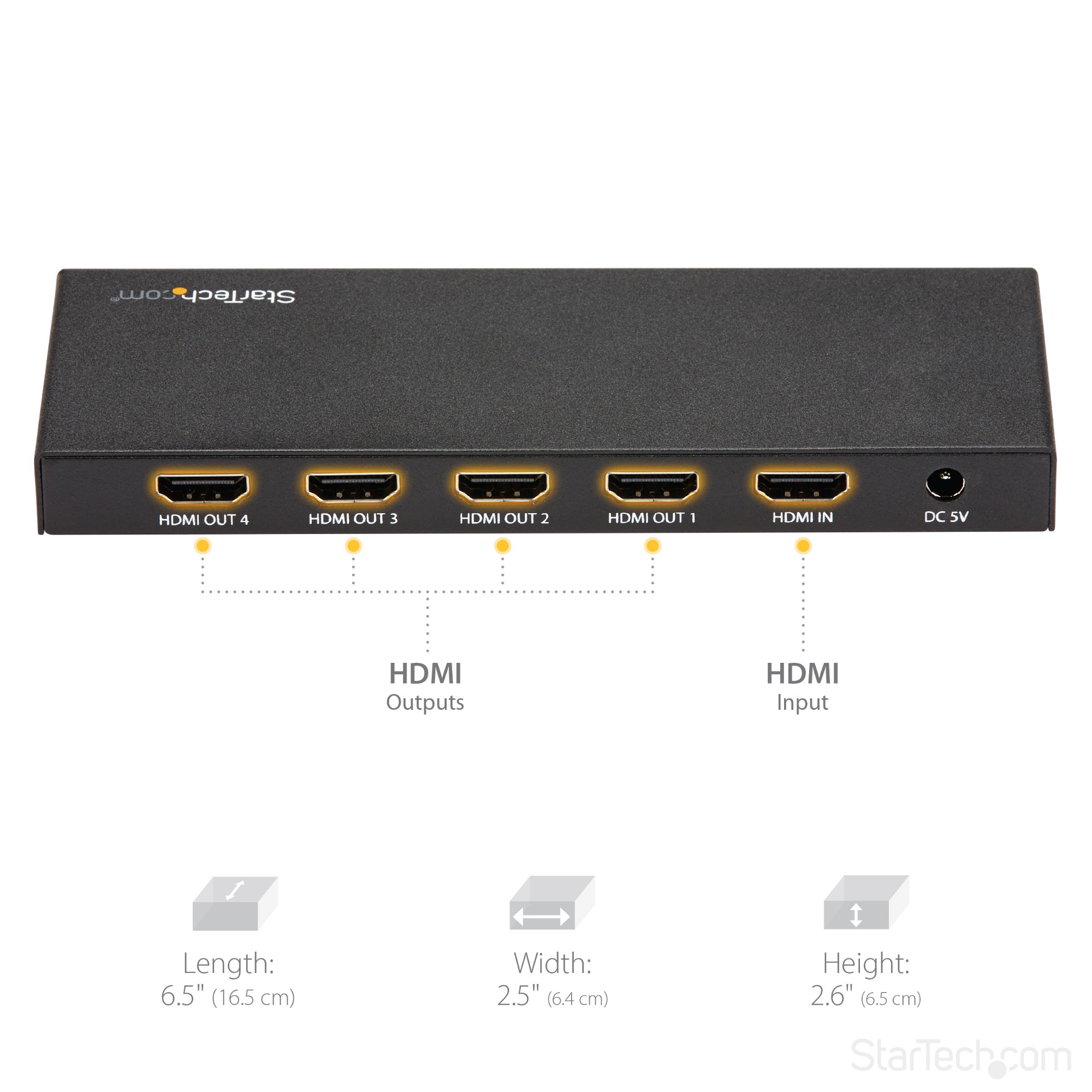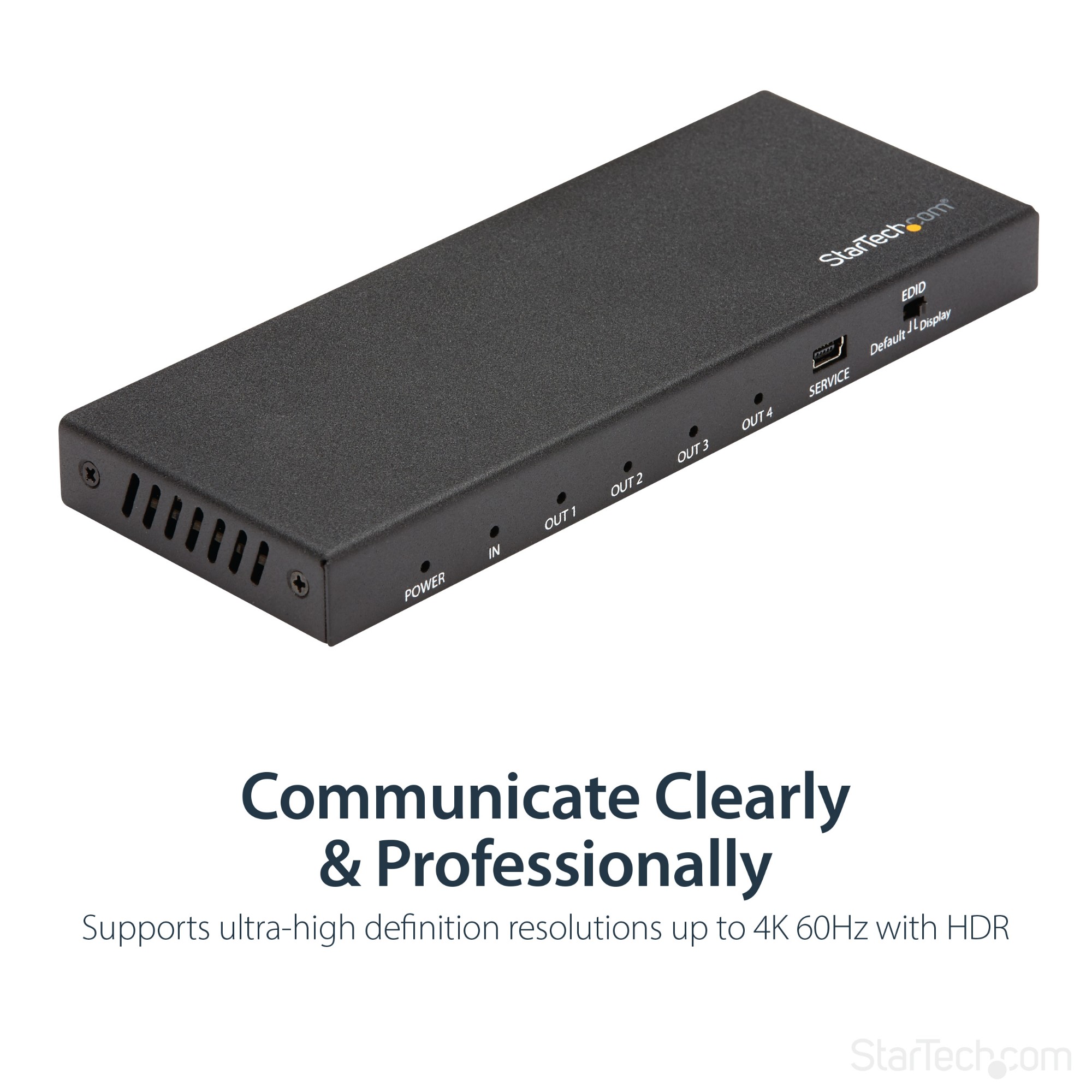 StarTech.com HDMI Splitter - 4-Port - 4K 60Hz - HDMI Splitter 1 In 4 Out - 4 Way HDMI Splitter - HDMI Port Splitter (ST124HD202)