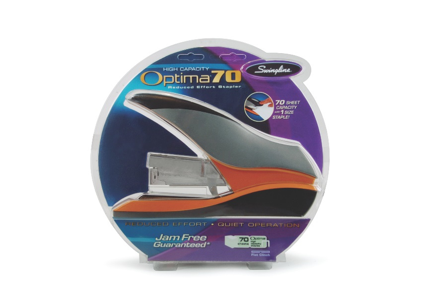 Top of the line desktop stapler provides high performance stapling you can count on - in a convenient, compact size. Easily staples as few as 2 or as many as 70 sheets when used with specially designed Optima® High Capacity Staples. Plus, the flat clinch stapling design allows neater stacking of stapled papers.
