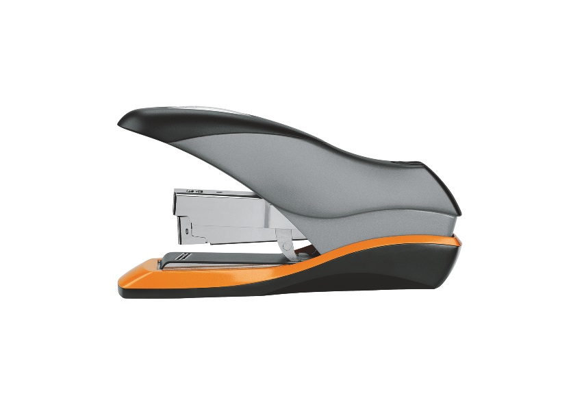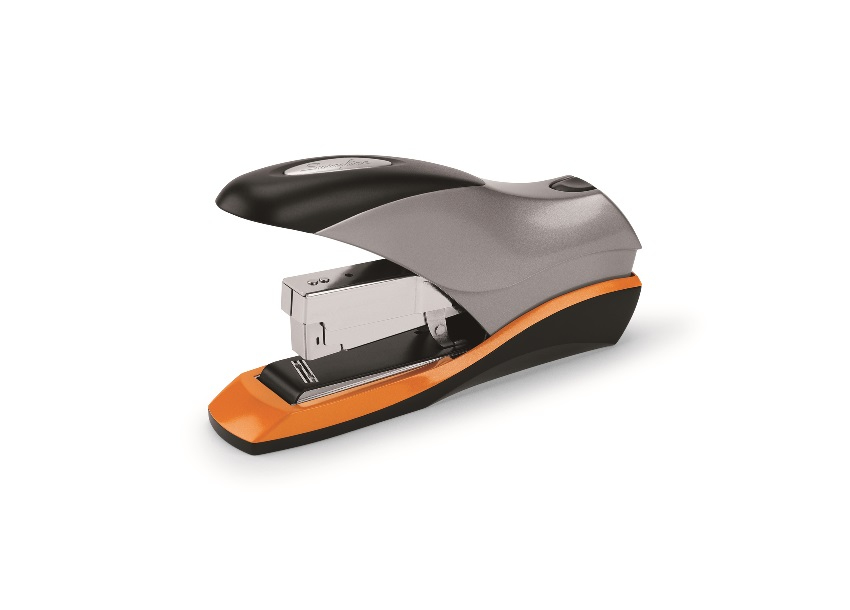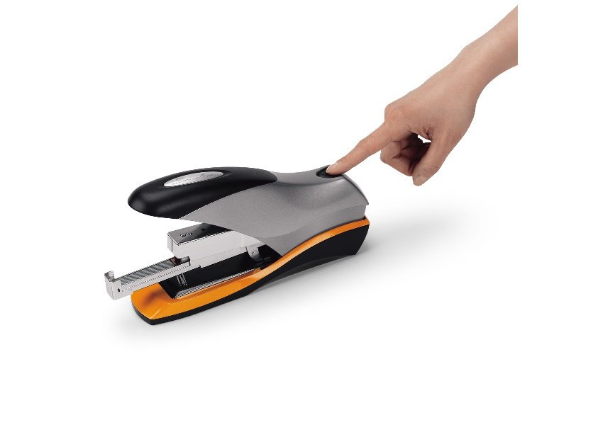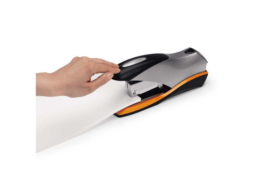 - Requires 50% less effort to use than comparable staplers; ergonomic soft-touch handle