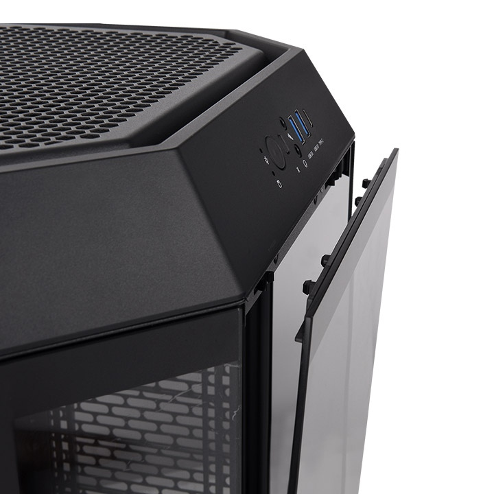 As a new edition of The Tower Series, The Tower 300 inherits the classic vertical case design but comes in an octagonal prism shape. It has amazing hardware compatibility, accommodating a 4090 GPU, a standard-sized power supply up to 220mm, and a 420mm AIO radiator. What's more, it can accommodate up to eight 120mm/140mm fans on the top, back, PSU cover and right side fan bracket. If you want to make The Tower 300 more visually appealing, you can purchase the separately sold 3.9" LCD Screen Kit and Chassis Stand Kit to upgrade the build; the former to display real-time component information and the latter for a unique view with a special horizontal placement.