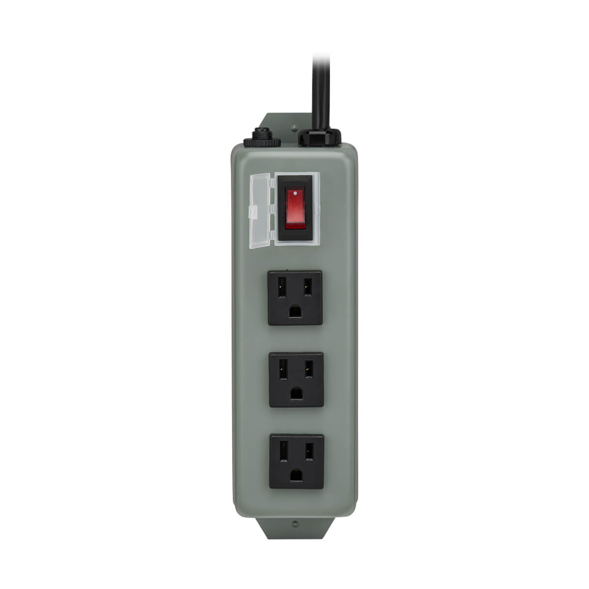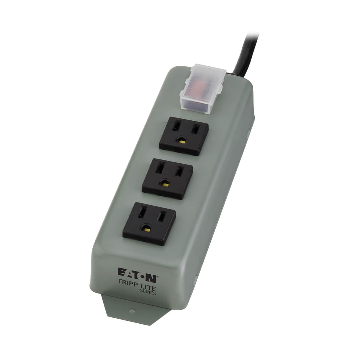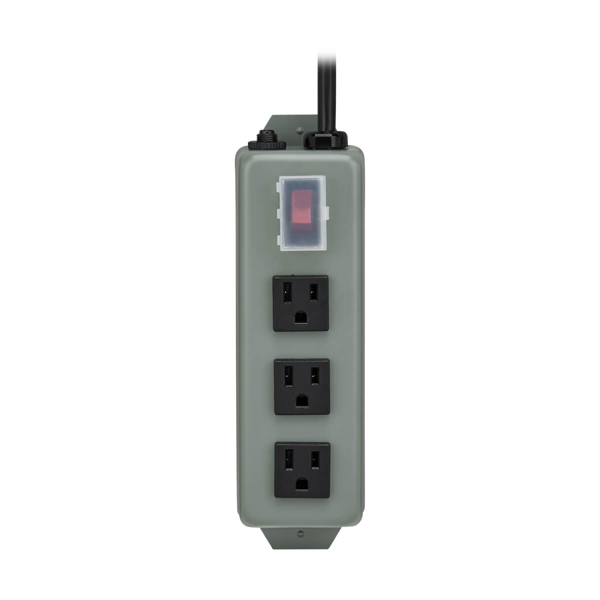 The 3SP9 Waber-by-Tripp Lite 3-Outlet Industrial Power Strip is the perfect power distribution solution for appliances, power tools, lighting and other electrical equipment in both industrial and commercial settings. Its rugged all-metal housing is designed for demanding environments, making it ideal for a factory floor, warehouse, server room or commercial space. Keyhole mounting tabs let you install the 3SP9 wherever convenient—on a wall, floor, workbench or under a counter.