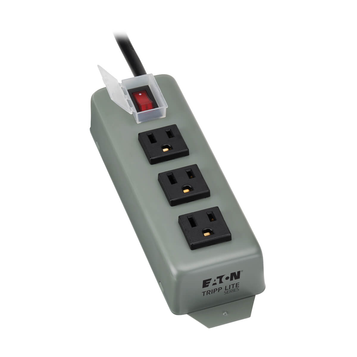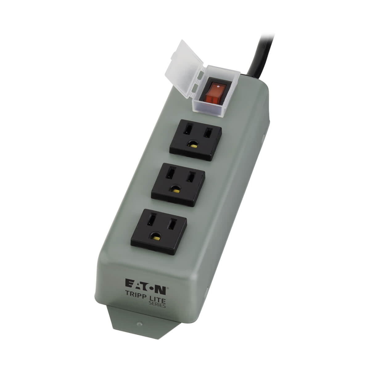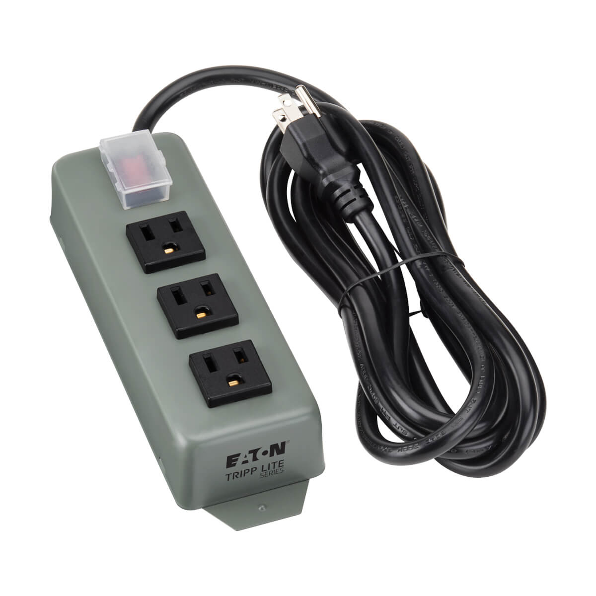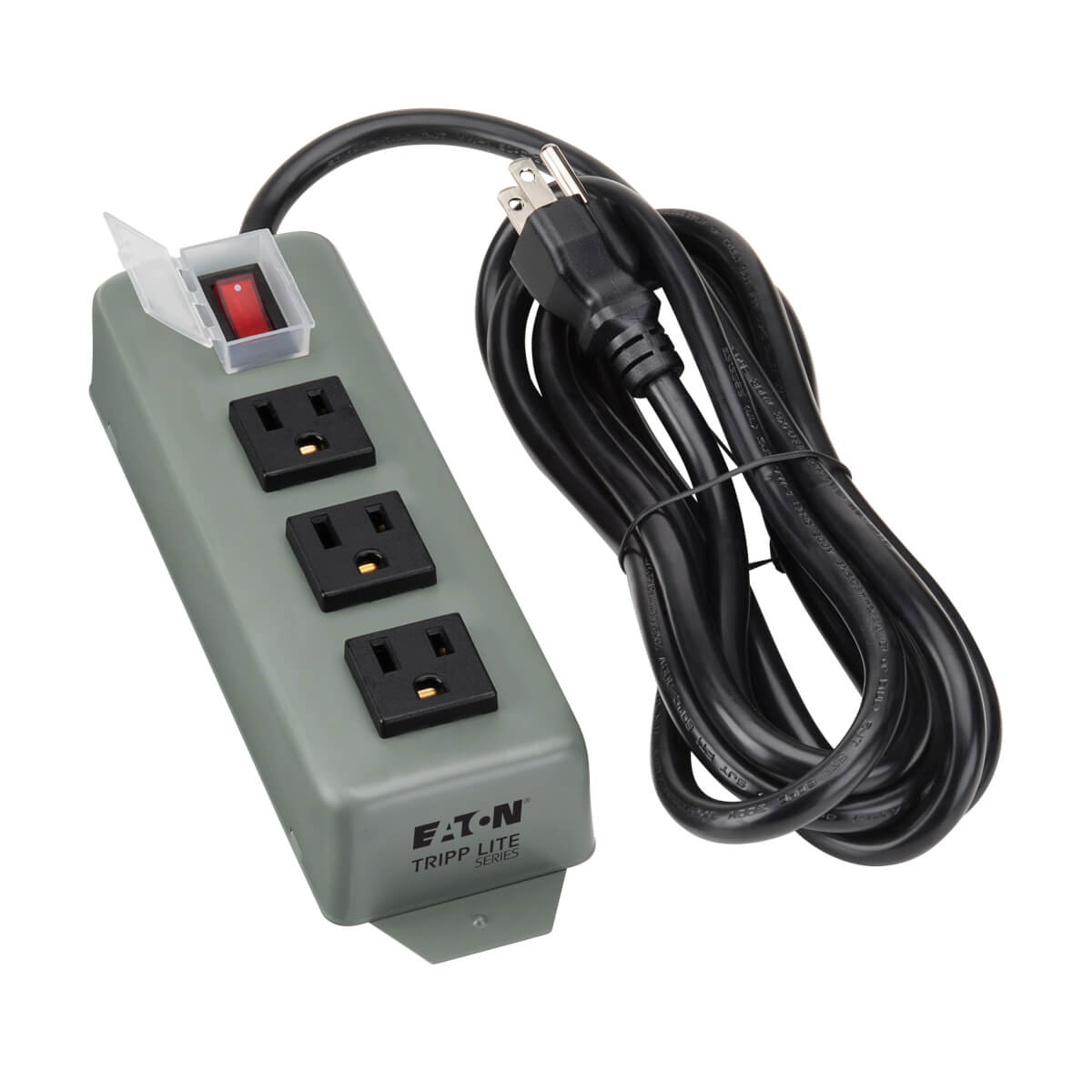The 3SP9 Waber-by-Tripp Lite 3-Outlet Industrial Power Strip is the perfect power distribution solution for appliances, power tools, lighting and other electrical equipment in both industrial and commercial settings. Its rugged all-metal housing is designed for demanding environments, making it ideal for a factory floor, warehouse, server room or commercial space. Keyhole mounting tabs let you install the 3SP9 wherever convenient—on a wall, floor, workbench or under a counter.