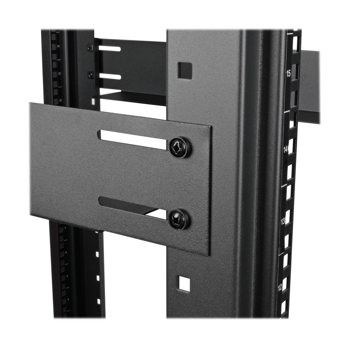 The 4POSTRAILSM 4-Post Rack-Mount Installation Kit supports heavy UPS systems in your EIA-standard four-post rack. The two L brackets mount to the outside edges of the rack's vertical mounting rails - the edges facing the side panels - using the rails' square mounting holes. Attaching the 4POSTRAILSM to the side leaves your front and rear mounting holes free for equipment.