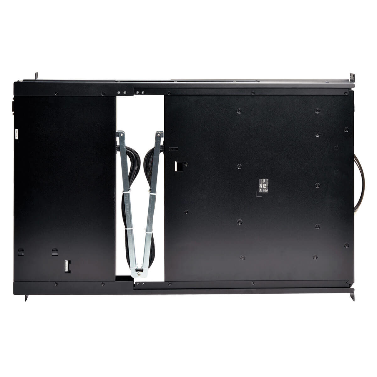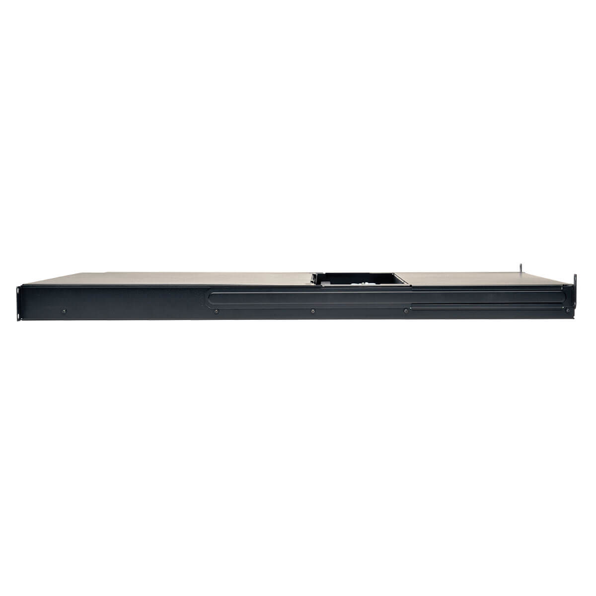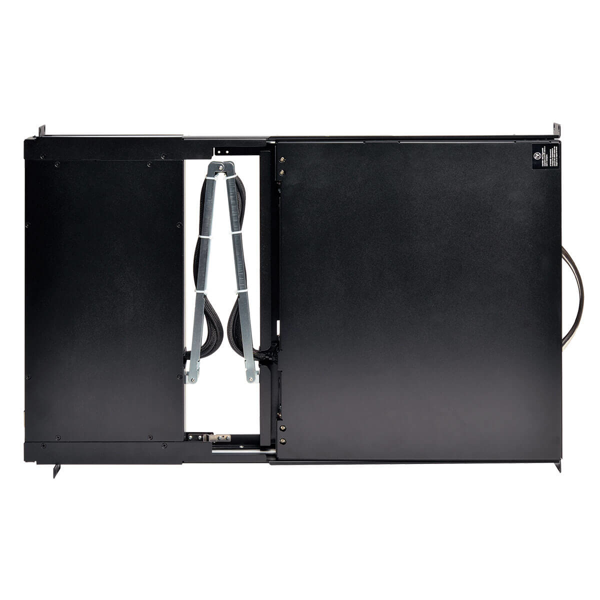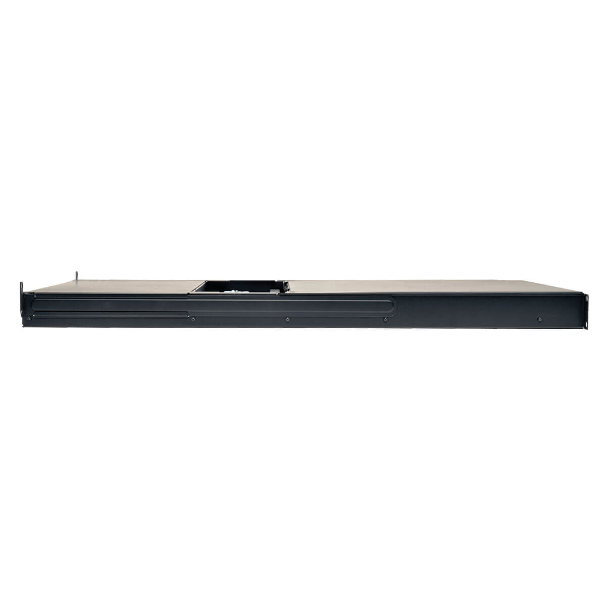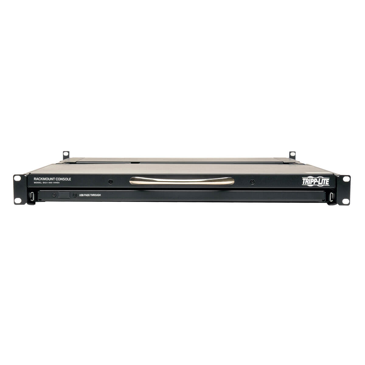 The B021-000-19-HD2 mounts into 1U of space in an EIA-standard 19-inch rack using the included mounting brackets and user-supplied screws. Simply pull out the steel drawer and flip up the screen when needed, then slide it back into the rack in automatic sleep mode when you’re finished. This keeps the keyboard and screen from blocking access to rack equipment when the console is not in use.