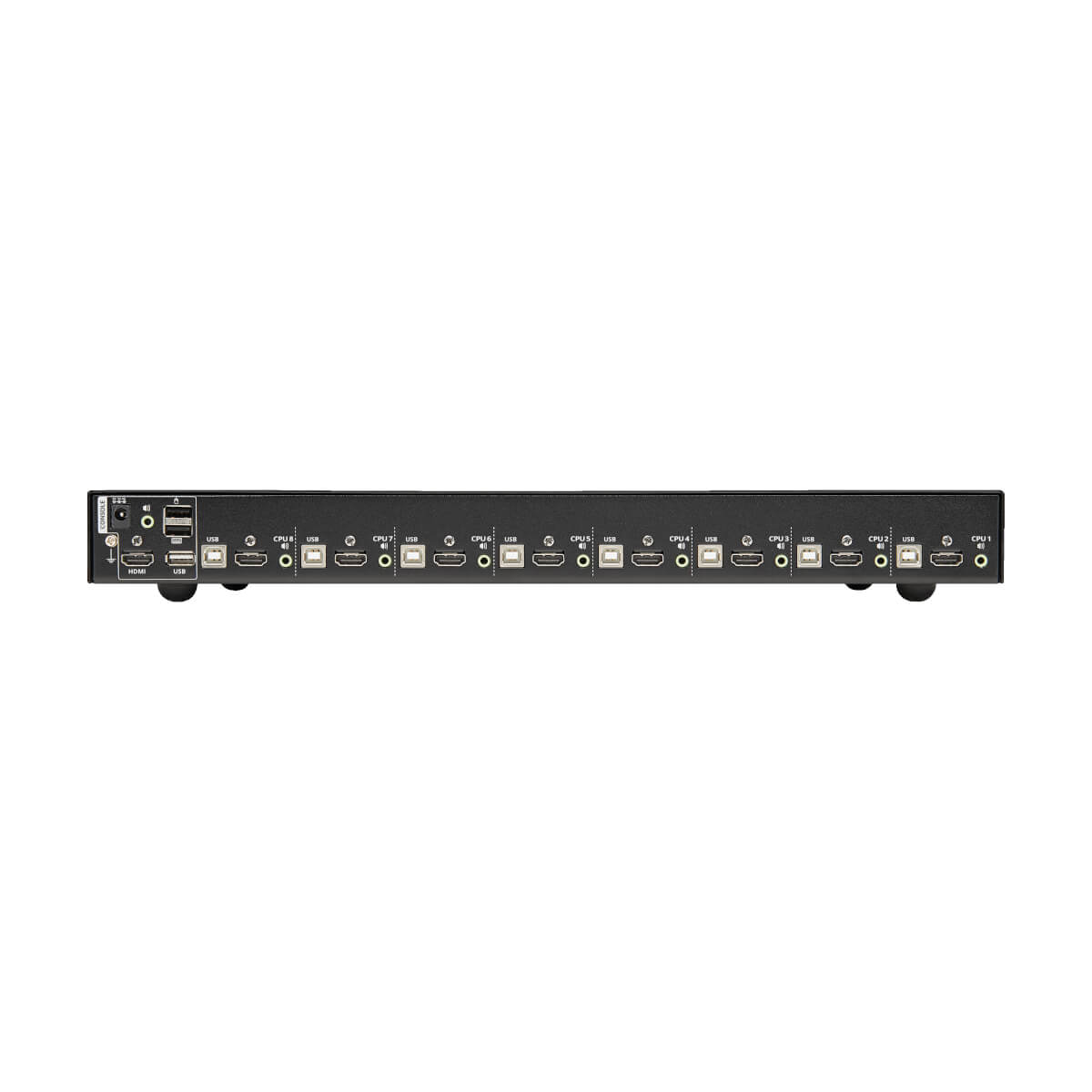 This rack-mount KVM switch lets you access, control, boot and reboot up to eight computers or other devices with HDMI ports at the same time. In addition to desktop and notebook computers, the switch also connects up to eight media centers, gaming systems, Blu-ray and DVD players, cable and satellite boxes, DVRs and other HDMI-enabled devices. All eight computers share one HDMI monitor, USB keyboard and USB mouse, which saves space on your desk or workspace.