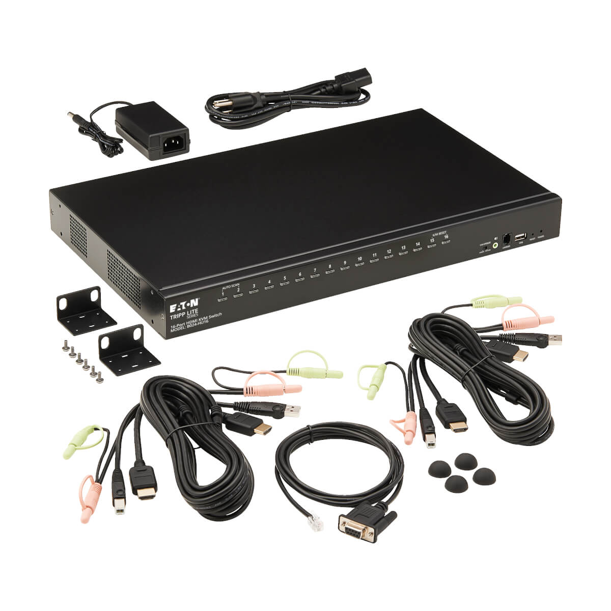 16-Port HDMI/USB KVM Switch with Audio/Video and USB Peripheral Sharing, 1U Rack-Mount, TAA