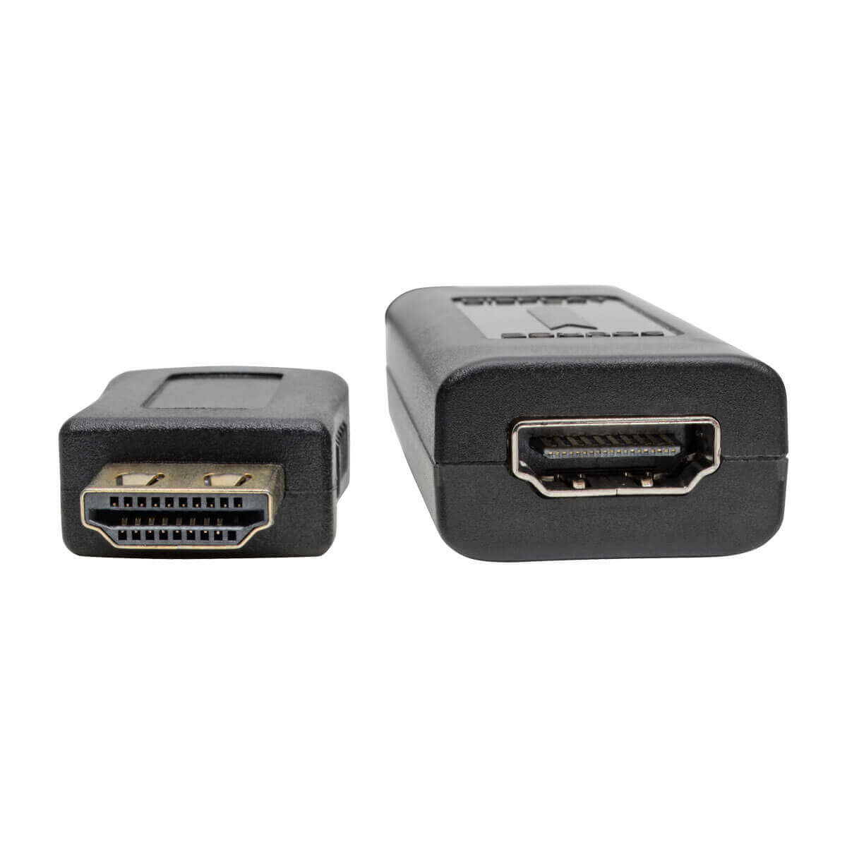 The B123-001-60 HDMI Signal Extender increases the distance a 1080p at 60 Hz (or 1920 x 1200) signal can be transmitted beyond the recommended 16 feet (4.9 meters). It supports computer video resolutions up to 1920 x 1200 and HD resolutions up to 1080p at 60 Hz, at a maximum distance of 125 feet (38.1 meters) from the source. Use P568-Series HDMI cables in most applications. When extending a 1080p at 60 Hz (or 1920 x 1200) signal more than 75 feet (22.9 meters), use cable made with 24 AWG wiring, such as the P568-100-HD. 24 AWG HDMI cabling is also needed when extending a 3D signal more than 50 feet (15.2 meters). A 3D signal can be extended up to 125 feet using 24 AWG HDMI cable. Simply connect the longer cable between the source and the B123-001-60, and the built-in cable between the adapter and the monitor/TV. The built-in HDMI cable features a latching connector for a more secure connection. Software or drivers are not required. HDCP compliant. Compliant with the Federal Trade Agreements Act (TAA) for GSA Schedule purchases.