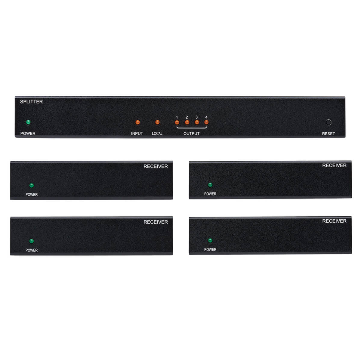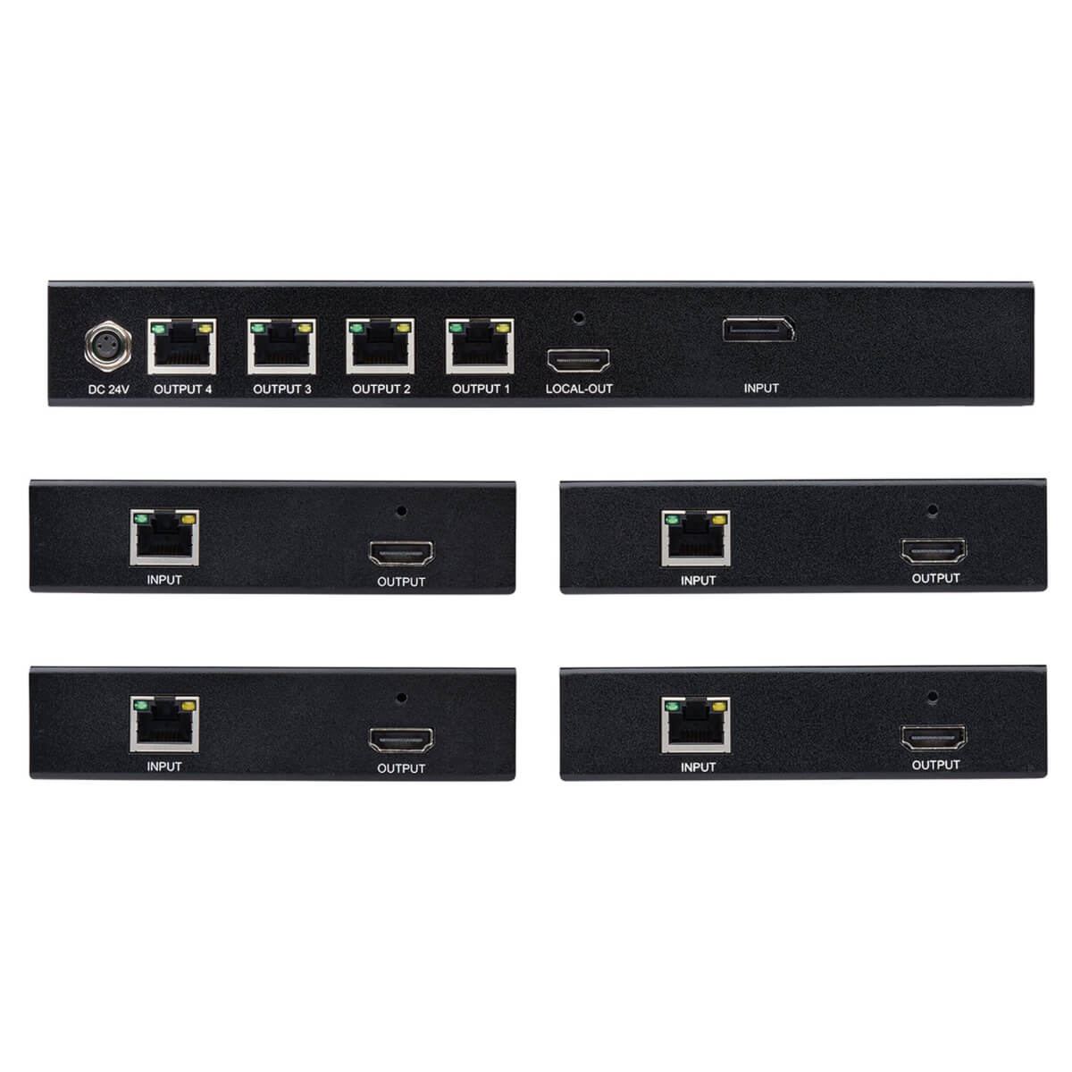 4-Port DisplayPort to HDMI over Cat6 Splitter/Extender Kit, Transmitter/4 Receivers, 4K 60 Hz, PoC, 125 ft., TAA
