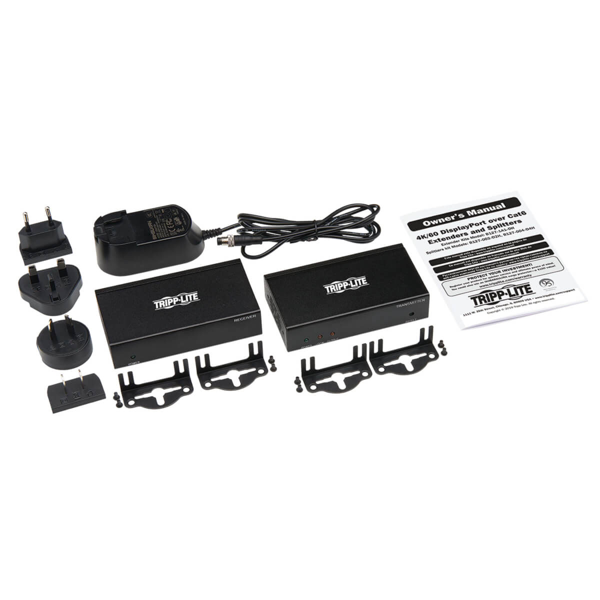 The included transmitter and receiver units work right out of the box with no software required. Mounting hardware is included for installing the units on walls, poles or 19-inch racks. Connect the transmitter to the source with a DisplayPort cable (Tripp Lite P580-Series) and the receiver to the display with an HDMI cable (such as Tripp Lite's P568- or P569-Series). Then, connect the two units using Cat6 patch cable (Tripp Lite N202-Series). Connect an optional display to the transmitter's local HDMI output to monitor the image connected to the receiver up to 125 feet away.
