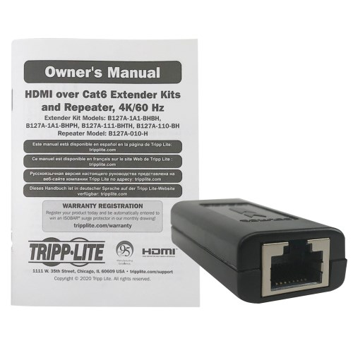 Tripp Lite Series Signal Repeater for B127A Extenders, Over Cat6, 4K 60Hz, HDR, 4:4:4, PoC, HDCP 2.2, 400 ft., TAA |