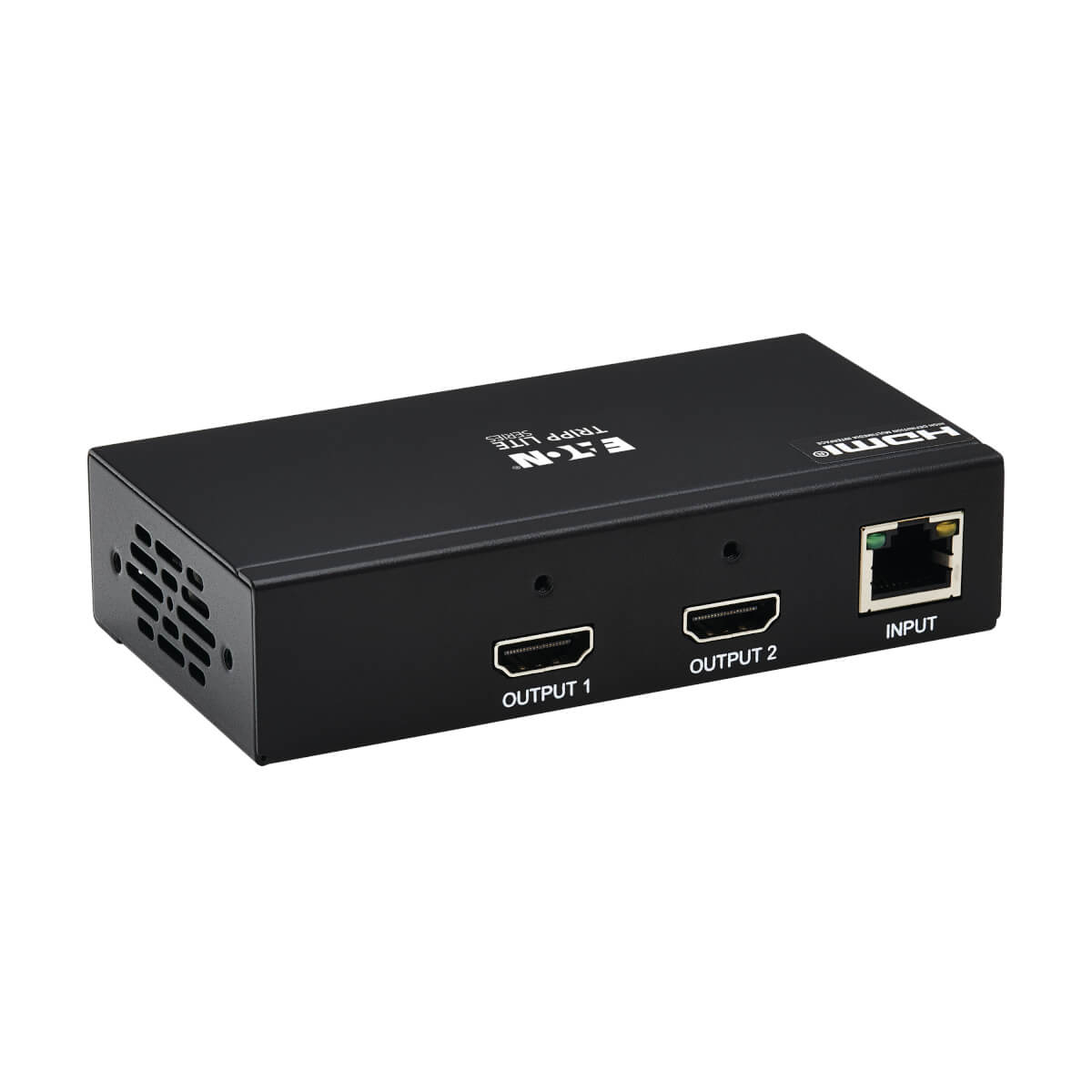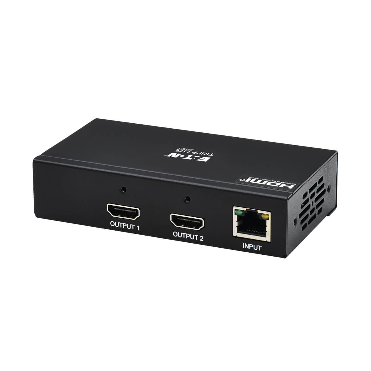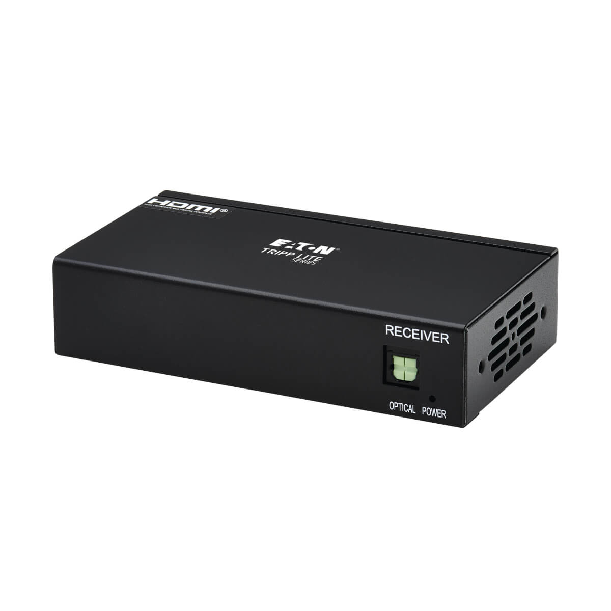 Power over Cable (PoC) technology powers the B127A-2A0-BH over Cat6 cable. LEDs indicate when the system is receiving power and a signal is being transmitted. PoC lets you avoid the hassle of a bulky power brick and gives you the freedom to place the receiver where needed without worrying about finding a nearby AC outlet.