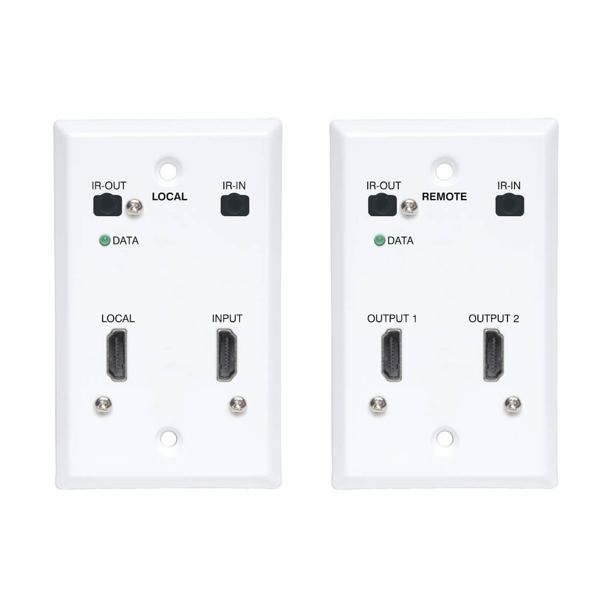 HDMI over Cat6 Extender Kit, Wallplate, 4K 60Hz, HDR, Dual Output, IR, PoC, 230 ft., TAA