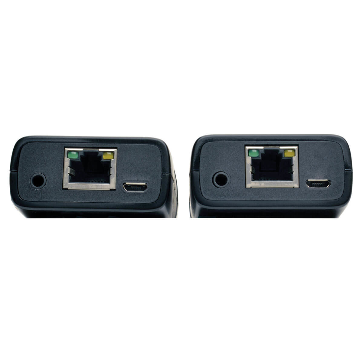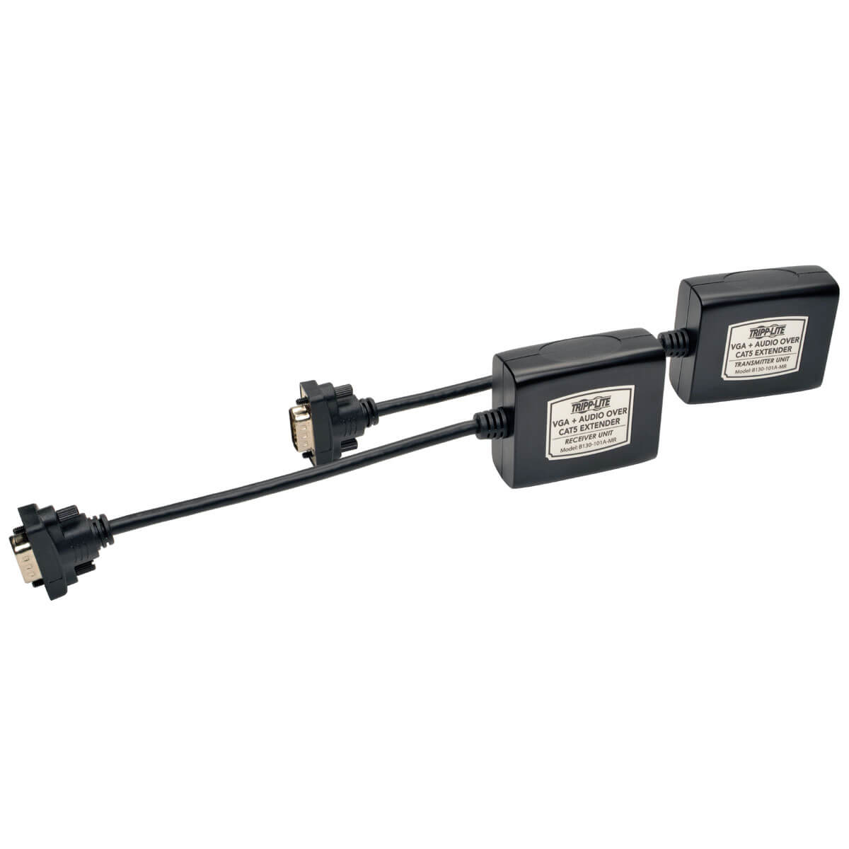Tripp Lite's B130-101A-MR VGA with Audio over Cat5 Extender Kit is a cost effective solution for those who don't need the long range capabilities (up to 1,000-ft. (304.8 m) of Tripp Lite's B130-101A-2. It extends a 1920 x 1080 video and audio signal up to 300-ft. (91.44 m) from the source, or a 1024 x 768 video and audio signal up to 750-ft. (228.6 m). The EDID copy feature stores the monitor's EDID information and sends it to the connected computer, ensuring optimal display compatibility. Power is supplied via the included USB Micro-B cables, with no external power supplies required. Connect the included Micro-B cables between the Transmitter and Receiver, and a USB port on a computer, monitor, or USB wall charger, such as the Tripp Lite U280-W01-QC3. The receiver unit also features equalization and gain controls to adjust the video image. Audio connections are made with standard 3.5mm stereo cables (not included) at both the transmitter and receiver. Compliant with the Federal Trade Agreements Act (TAA) for GSA Schedule purchases.