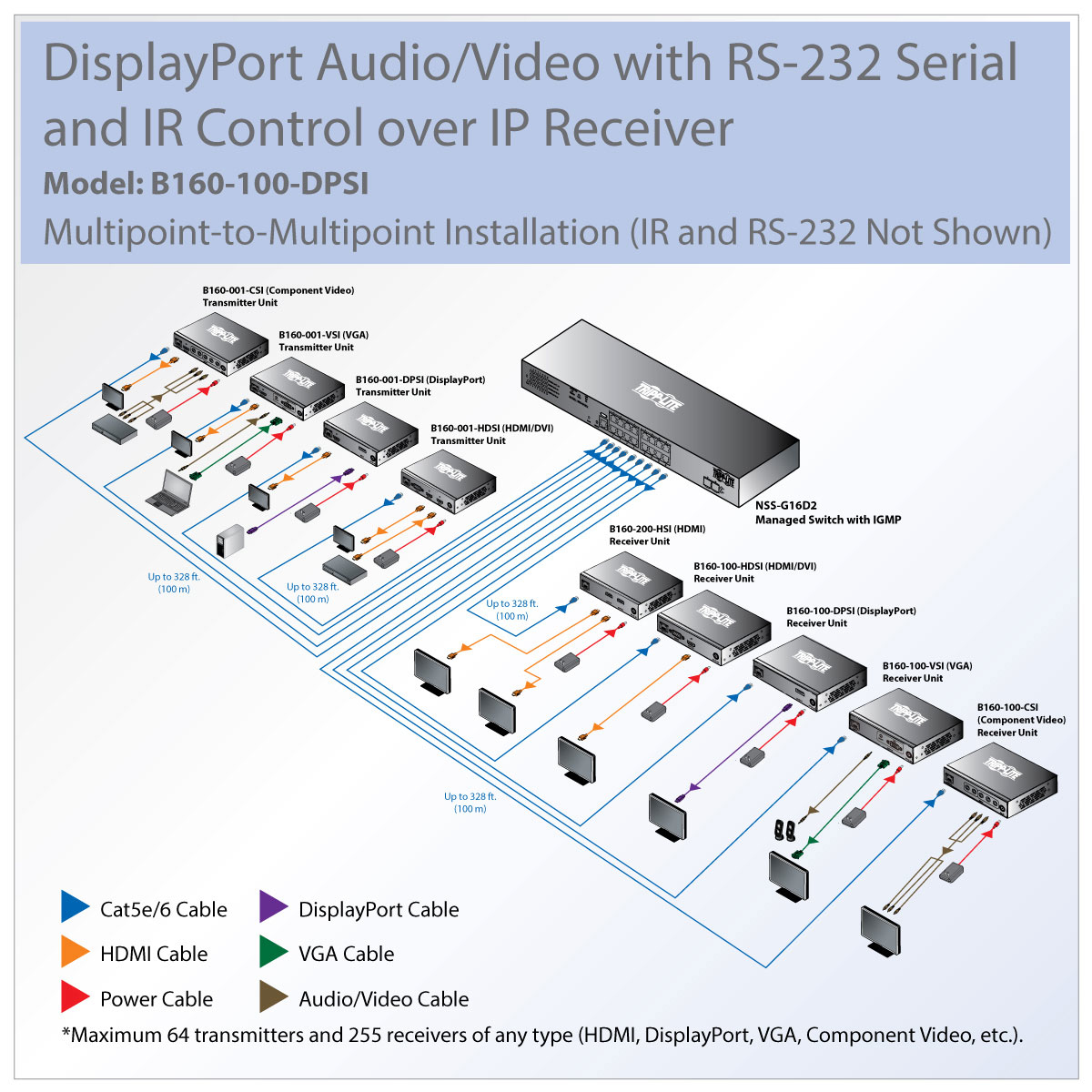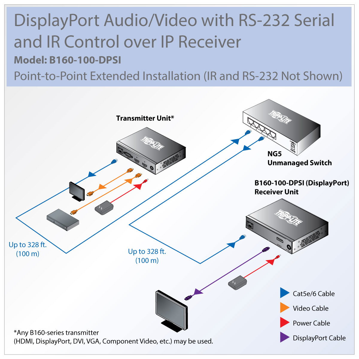 Compatible with all B160-Series A/V over IP transmitters