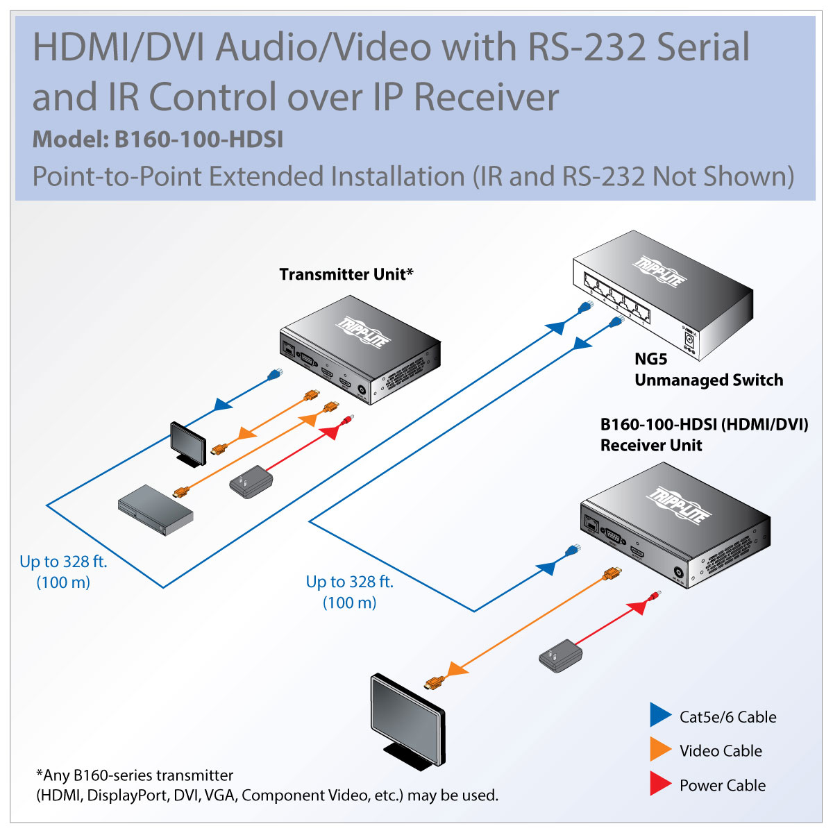 HDMI/DVI A/V, Serial and IR Control Signals over Cat5/6 Cabling