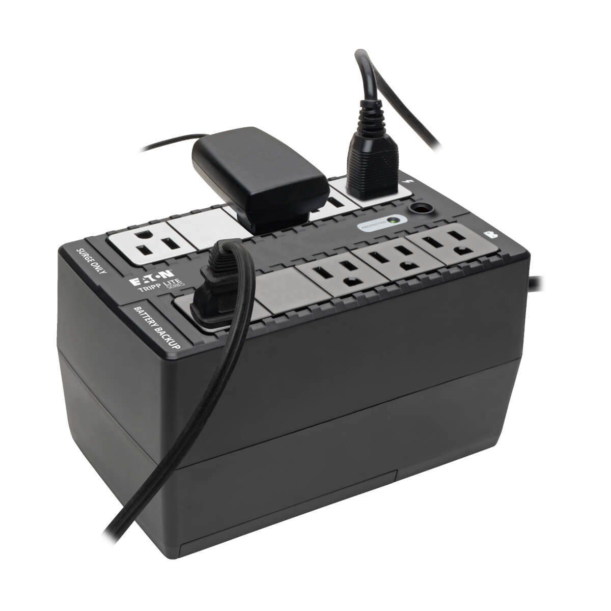 Four 5-15R outlets provide both battery backup and surge protection to your computer, monitor and other crucial components. The other four are surge-protected only for printers, scanners and other non-essential equipment. A 316-joule surge suppression rating protects connected components from the harmful effects of power surges. Two outlets are spaced apart from the others to accommodate bulky transformers.