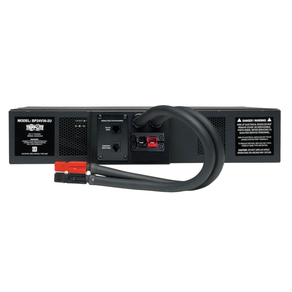 BP24V36-2US rack-mount external battery pack offers extended battery runtime when used in conjunction with expandable 24V rack-mount UPS systems. Includes heavy-gauge cabling with high-current DC connector for safe, simple installation. Included daisy-chain connector enables the connection of additional compatible 24V external battery packs to the host UPS. Included mounting accessories support 2U rack-mount installation in 4-post racks. Options for 2-point front-rail mounting, 2-post center-mounting and wall-mount installation available.