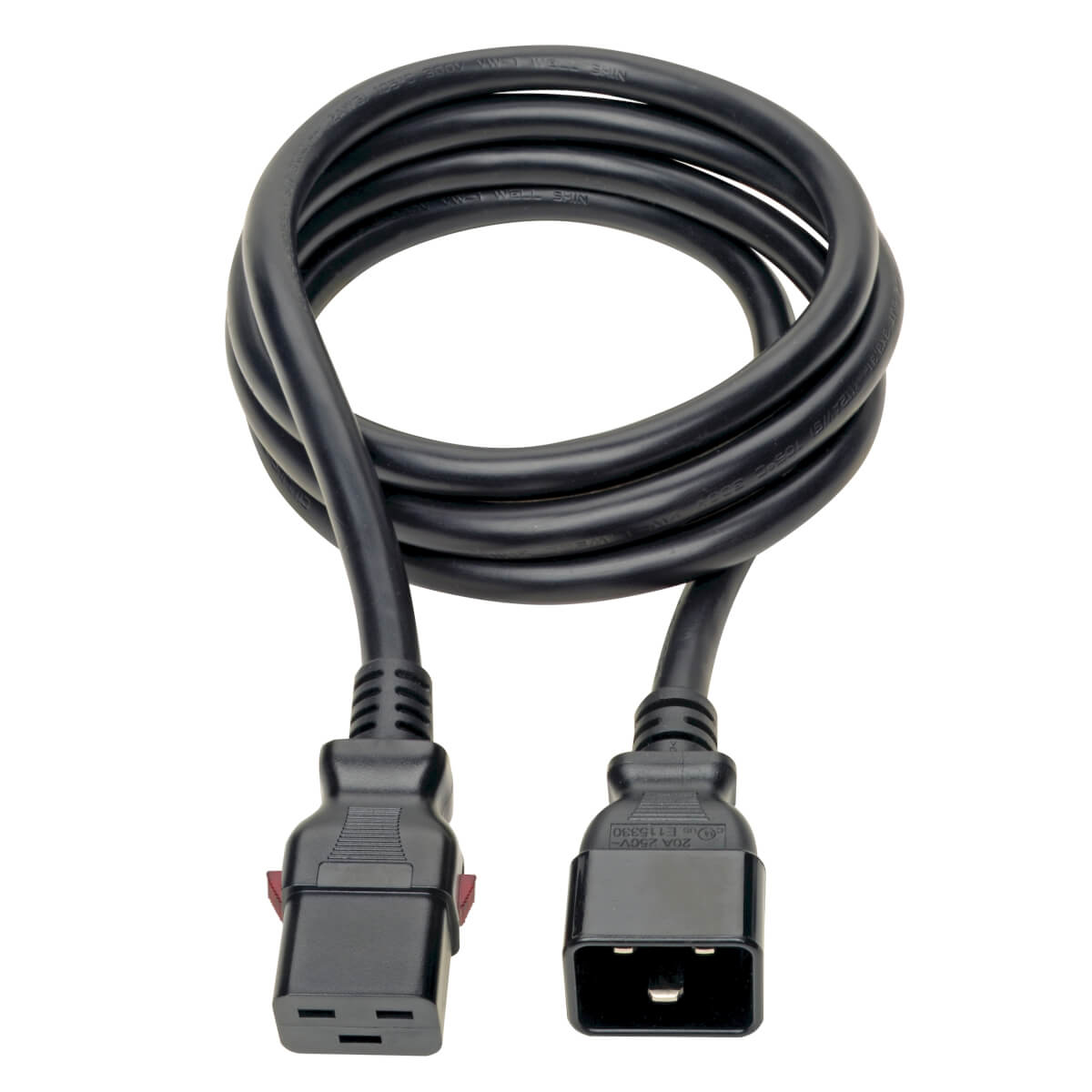 Tripp Lite C20 to C19 Power Cable - Locking C19 Connector, Heavy Duty, 20A, 100-250V, 12 AWG, 1.83 m, Black. Cable length: 70.9" (1.8 m), Connector 1: IEC C20, Connector 2: IEC C19. Input voltage: 100 - 250 V