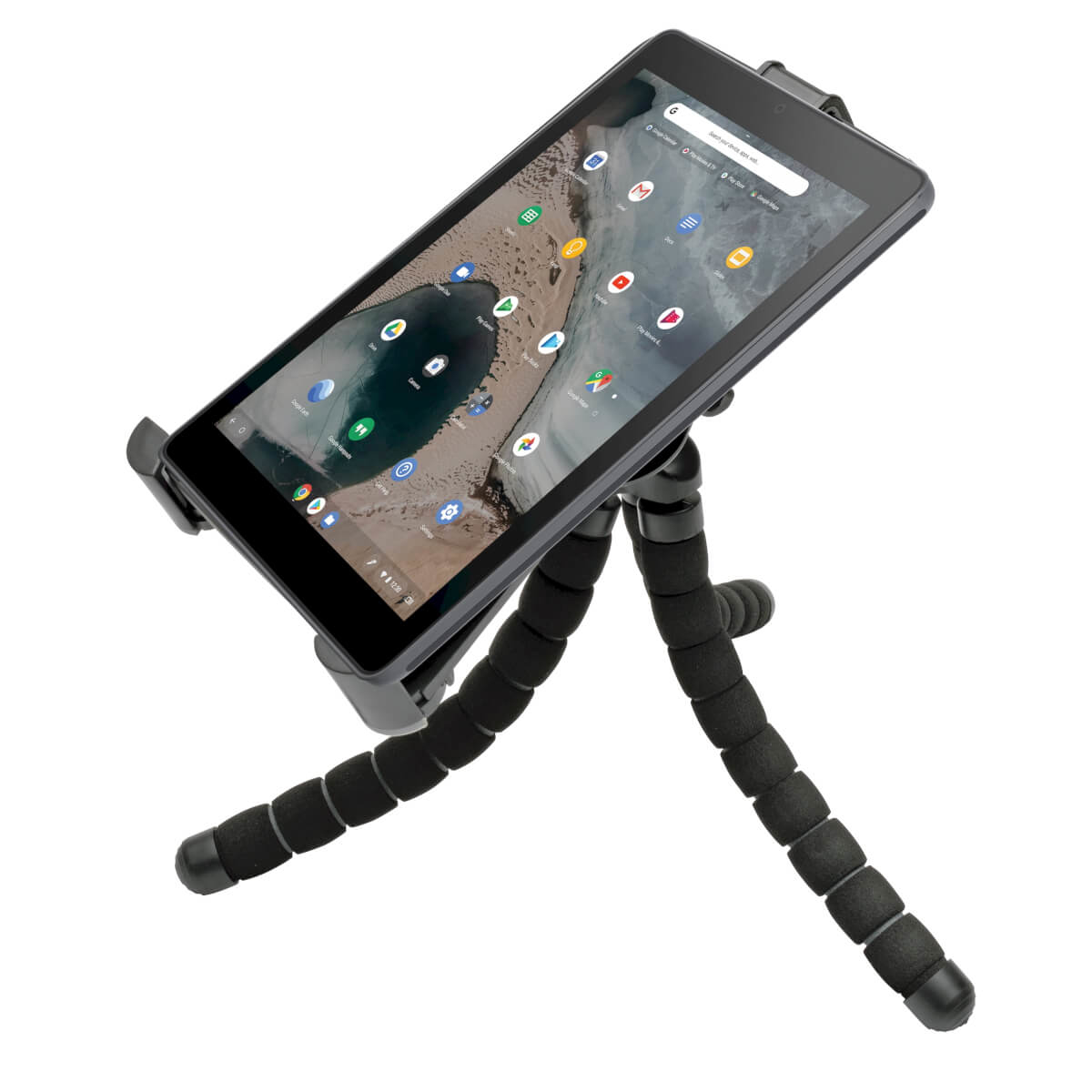 Flexible 8 in. legs bend to stabilize tablet on uneven surfaces